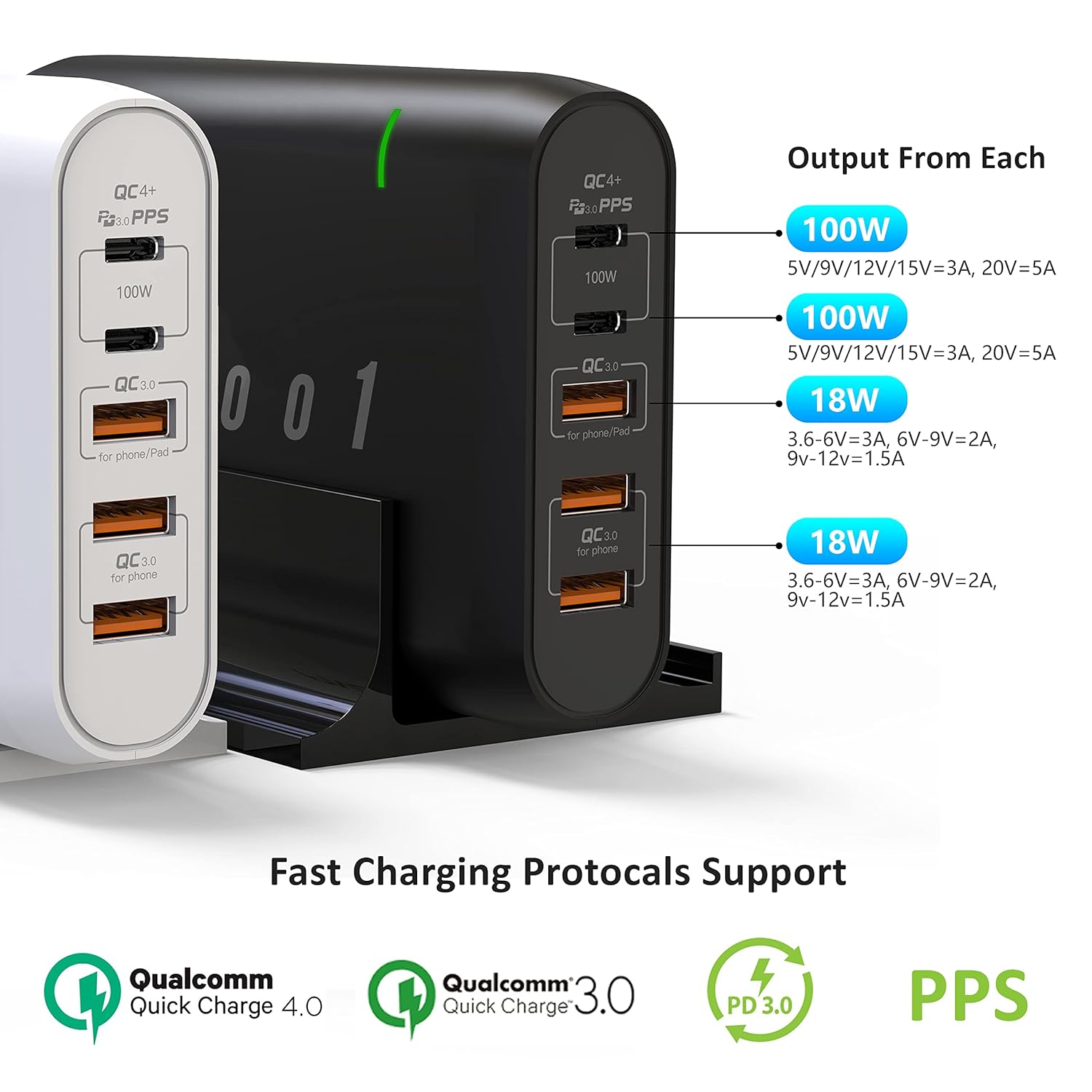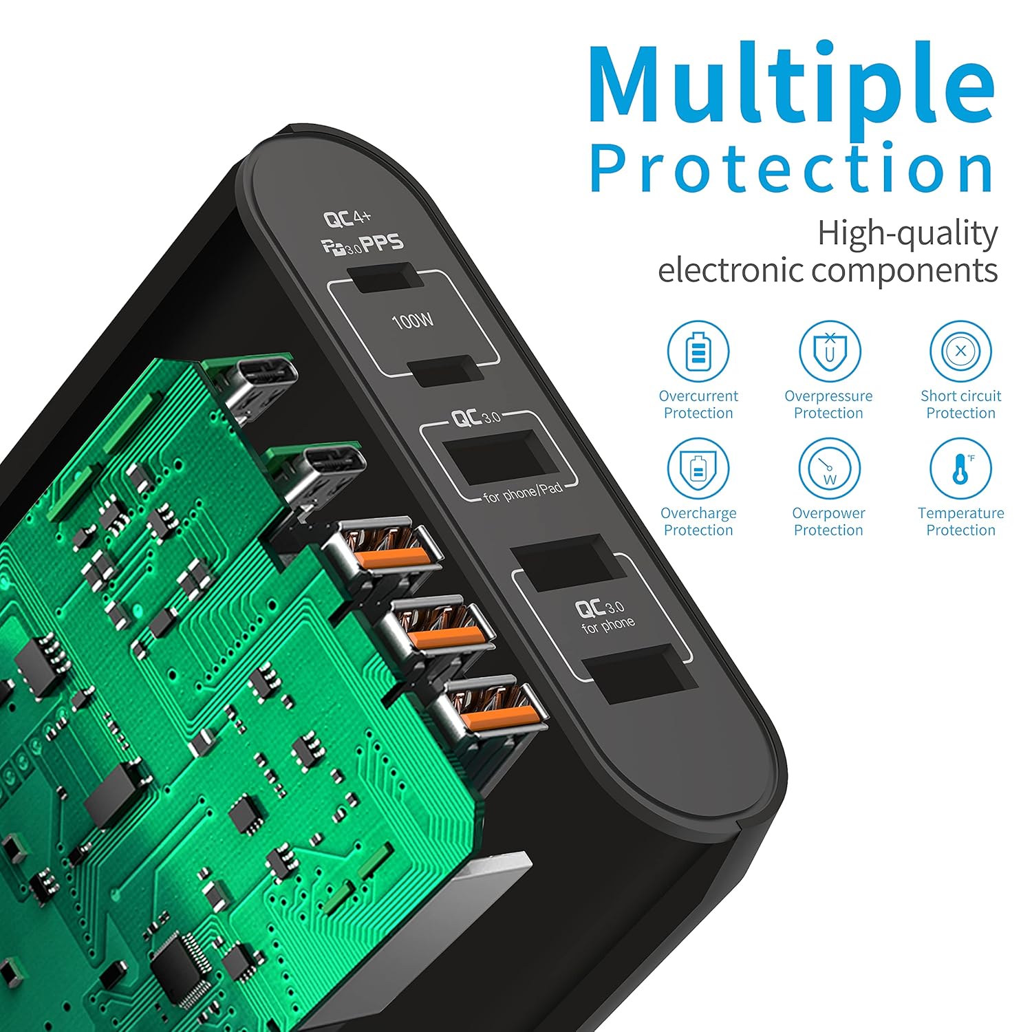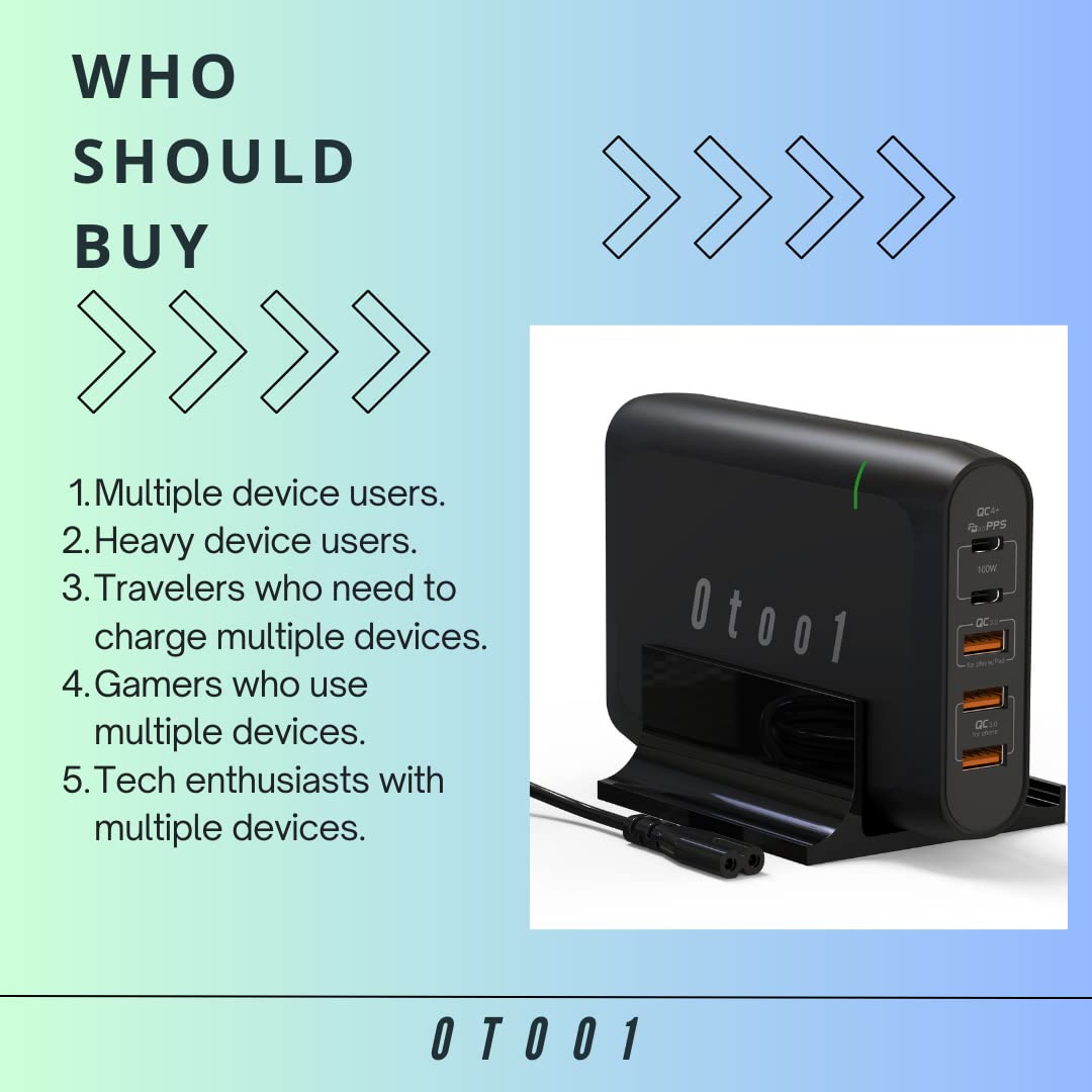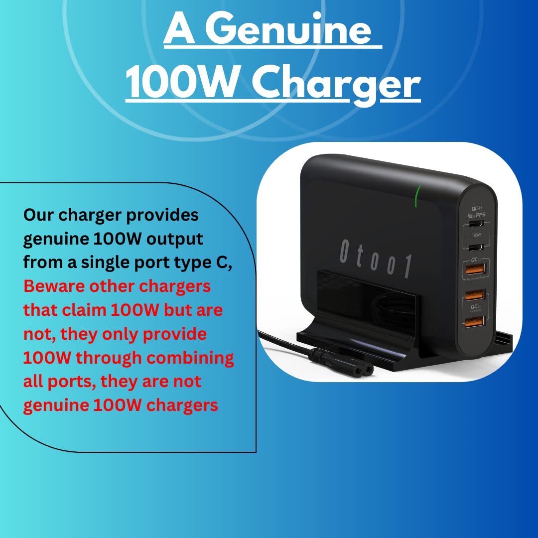 Why 100W Charger? Through a high wattage multi port charger you can charge multiple devices at once at a high speed without demaging your battery or your device. And a smart 100 watt charger like 0too1 can charge your smartphone by only delivering as much power as the your device can handle.