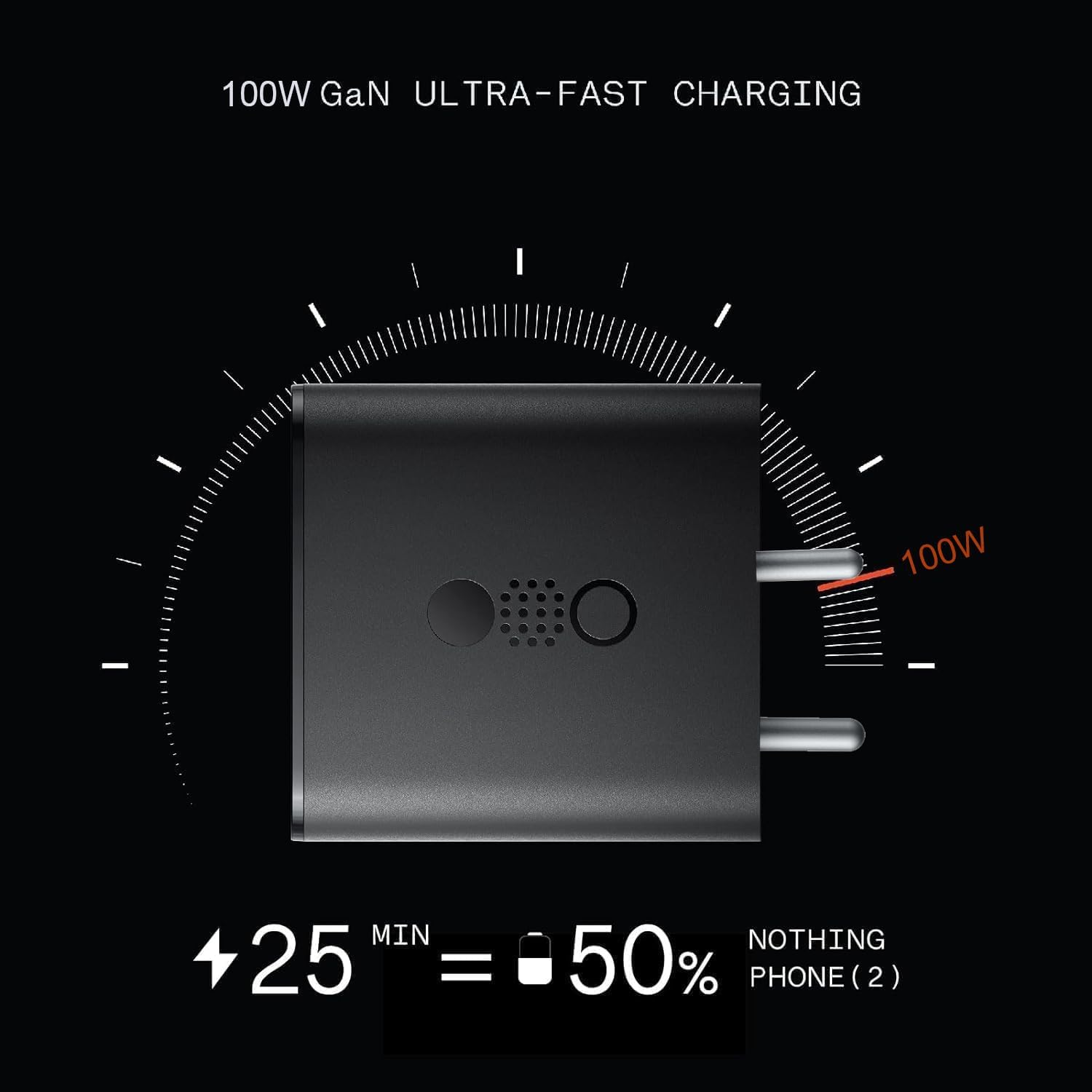 UNIVERSAL COMPATIBILITY: This 100W adapter is compatible with Nothing Phone 1/ Nothing Phone 2/ Nothing Phone 2A/ Nothing CMF Phone 1/ Nothing Phone (2a) Plus/ Nothing Phone (3a)/ Nothing Phone (3a) Pro, Samsung Galaxy S24 Ultra, tablets, and other USB-C devices