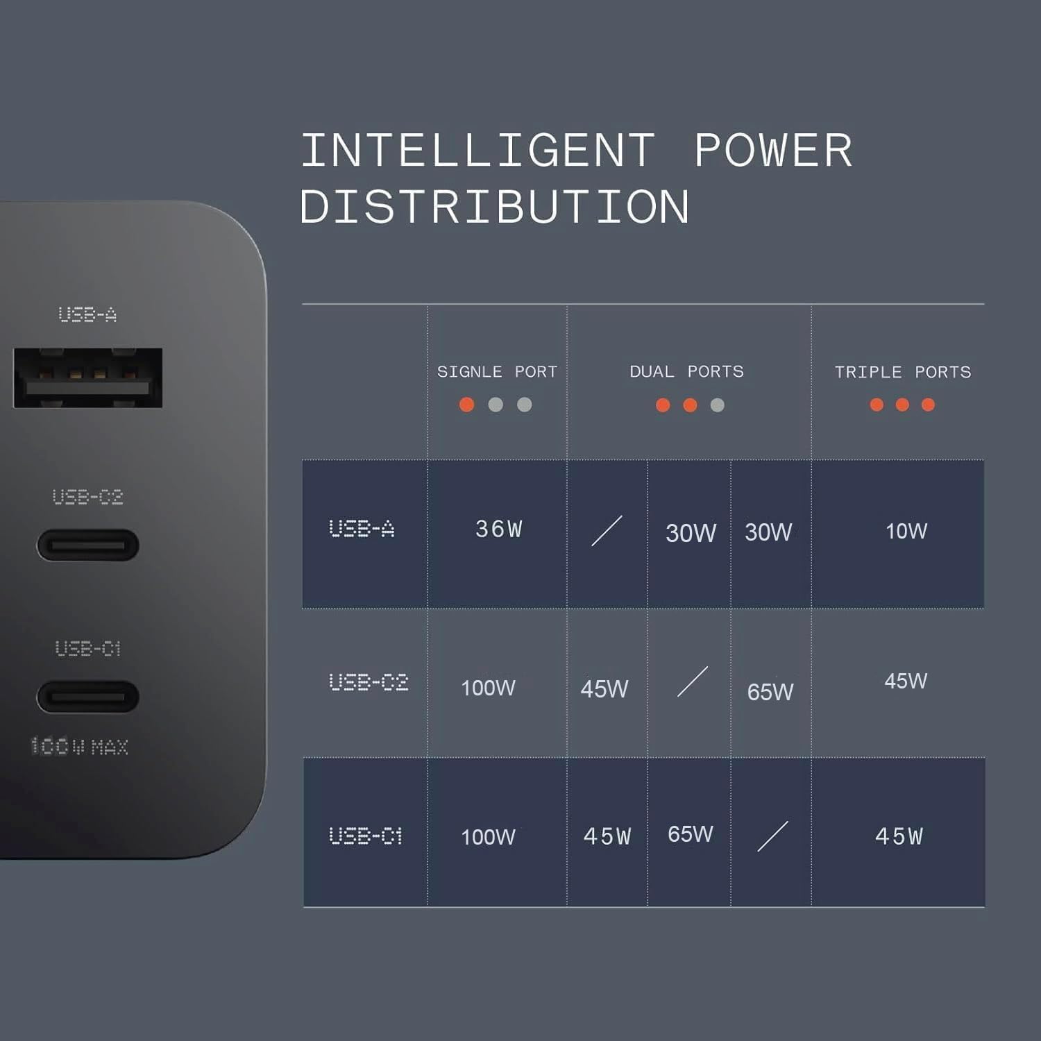 100W GaN CHARGER: get a seamless performance across your devices with a maximum output of 100W, whether you use both USB-C ports or a mix of USB-C and USB-A ports