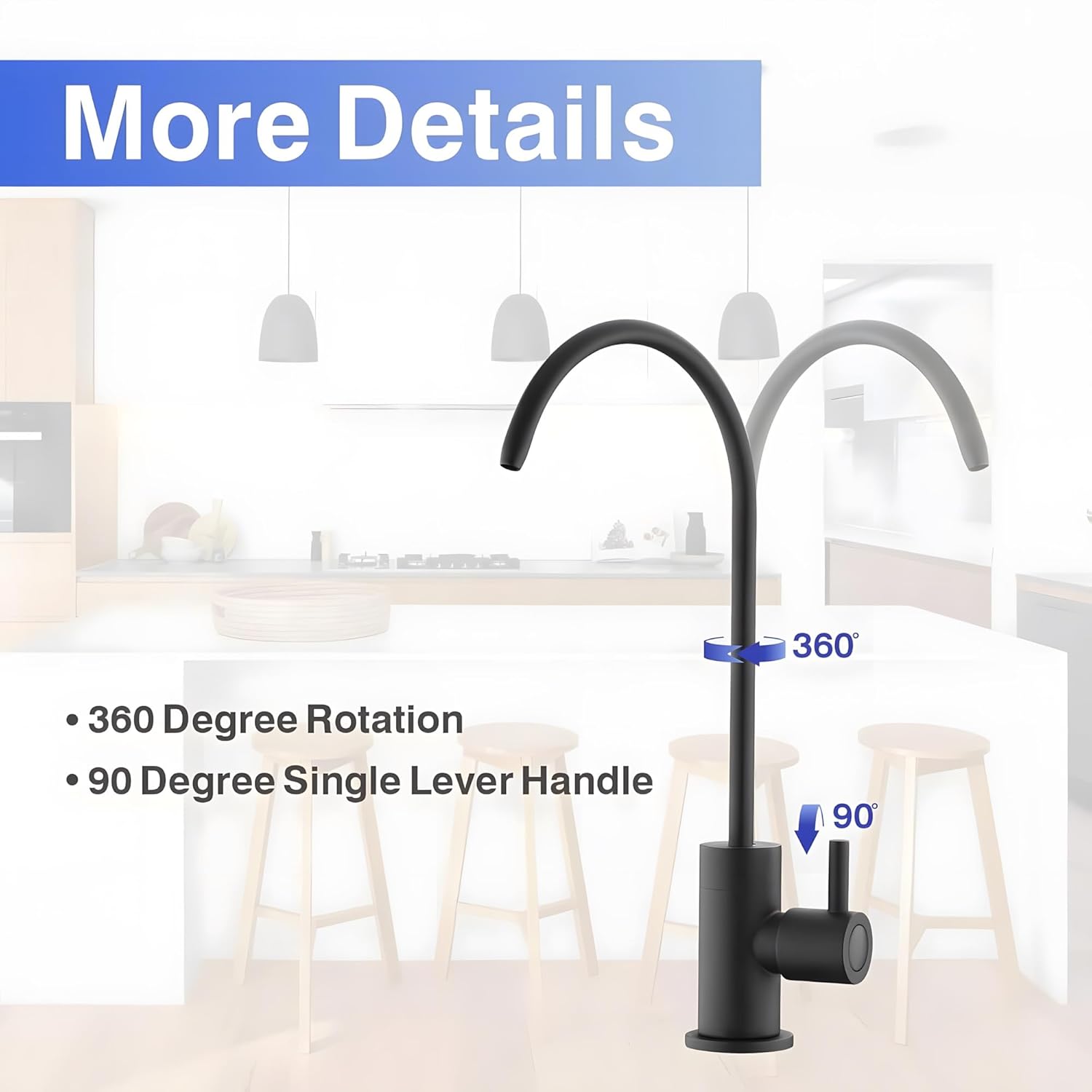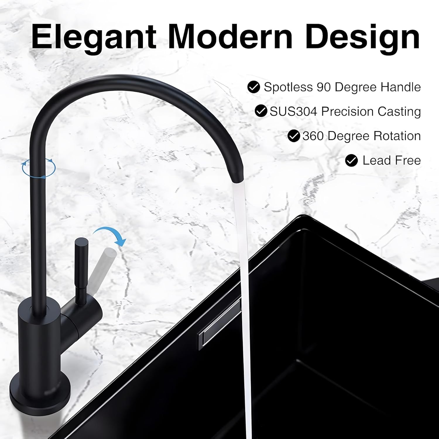 Easy to operate: single-handle design can easily control the water flow, and the high-arc 360-degree rotating water outlet.