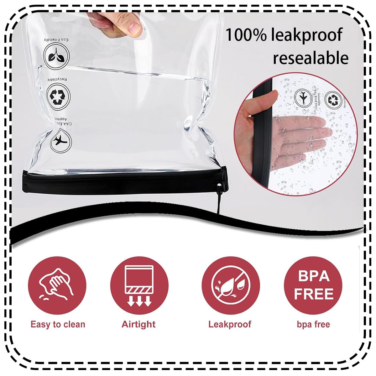 User Benefits: Whether you’re navigating airport security or organizing your daily essentials, this transparent travel pouch provides a practical solution. The clear design eliminates the need to unpack, while the waterproof material ensures your items stay protected. Perfect for cosmetics, toiletries, and travel-sized liquids.