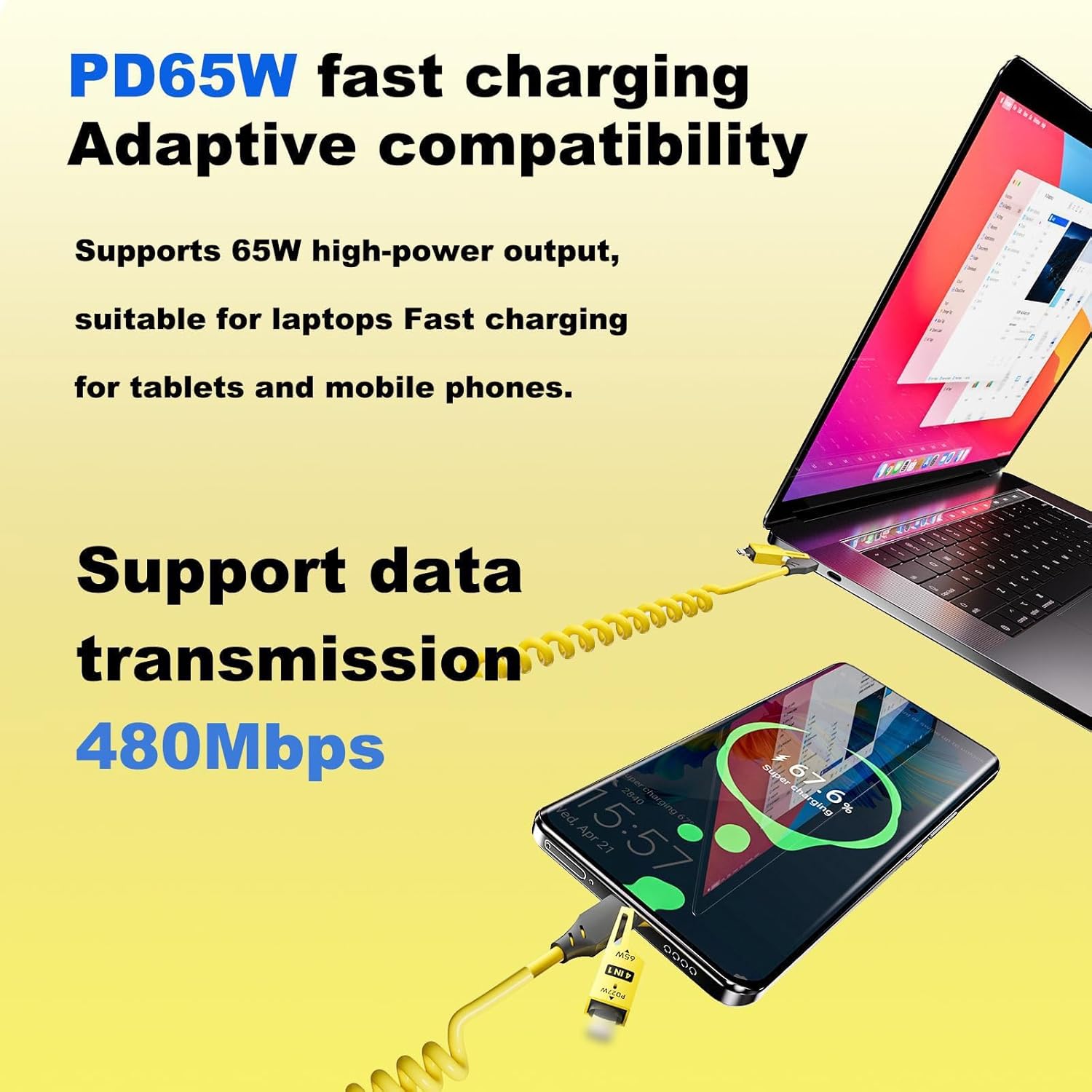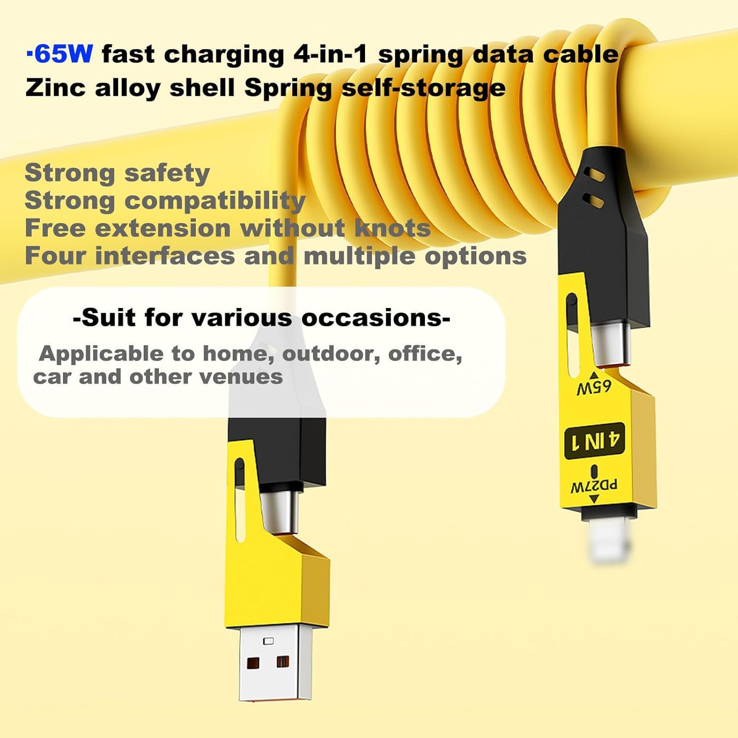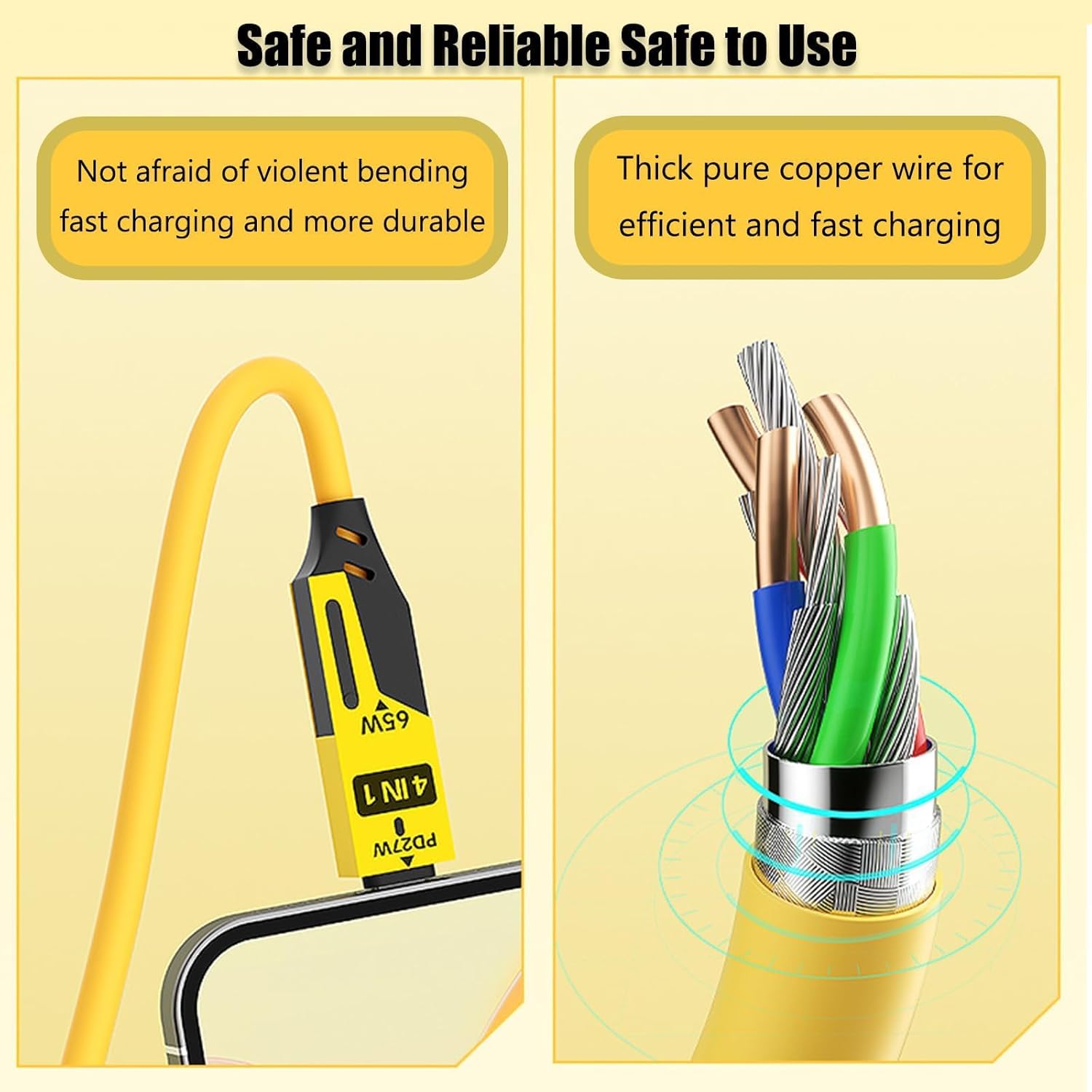 Universal Compatibility: The 4 in 1 fast charging & data cable supports multiple devices including iPhones, Android phones, and laptops; Its versatile design ensures seamless connectivity across various platforms