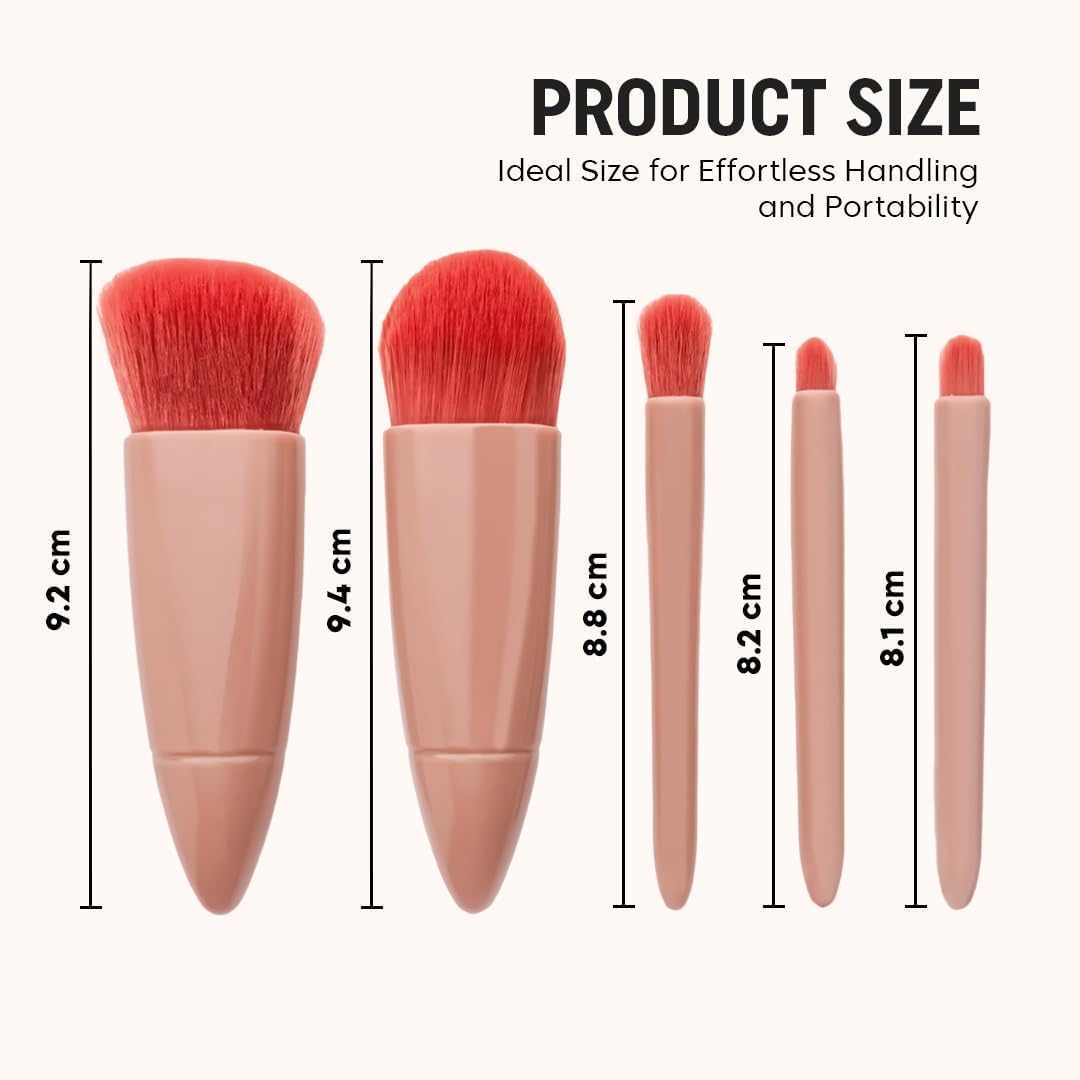 COMPLETE SET: Professional 5-piece makeup brush kit includes powder brush, foundation brush, smudge brush, lip brush, and eyeshadow brush in a compact case with mirror