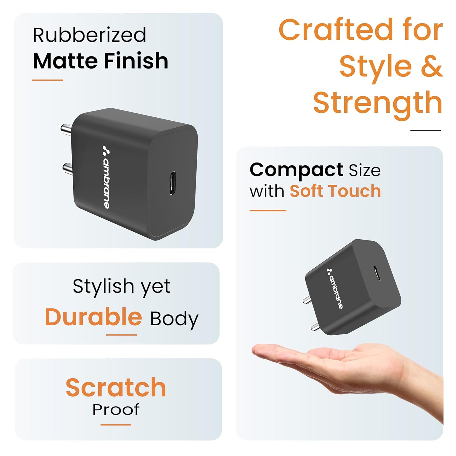The durable body of the Ambrane RAAP M20 is made for rough and tough use, ensuring that it’s reliable and long-lasting. With its rugged design and sturdy construction, this charger is built to withstand the wear and tear of daily use, making it ideal for daily use.