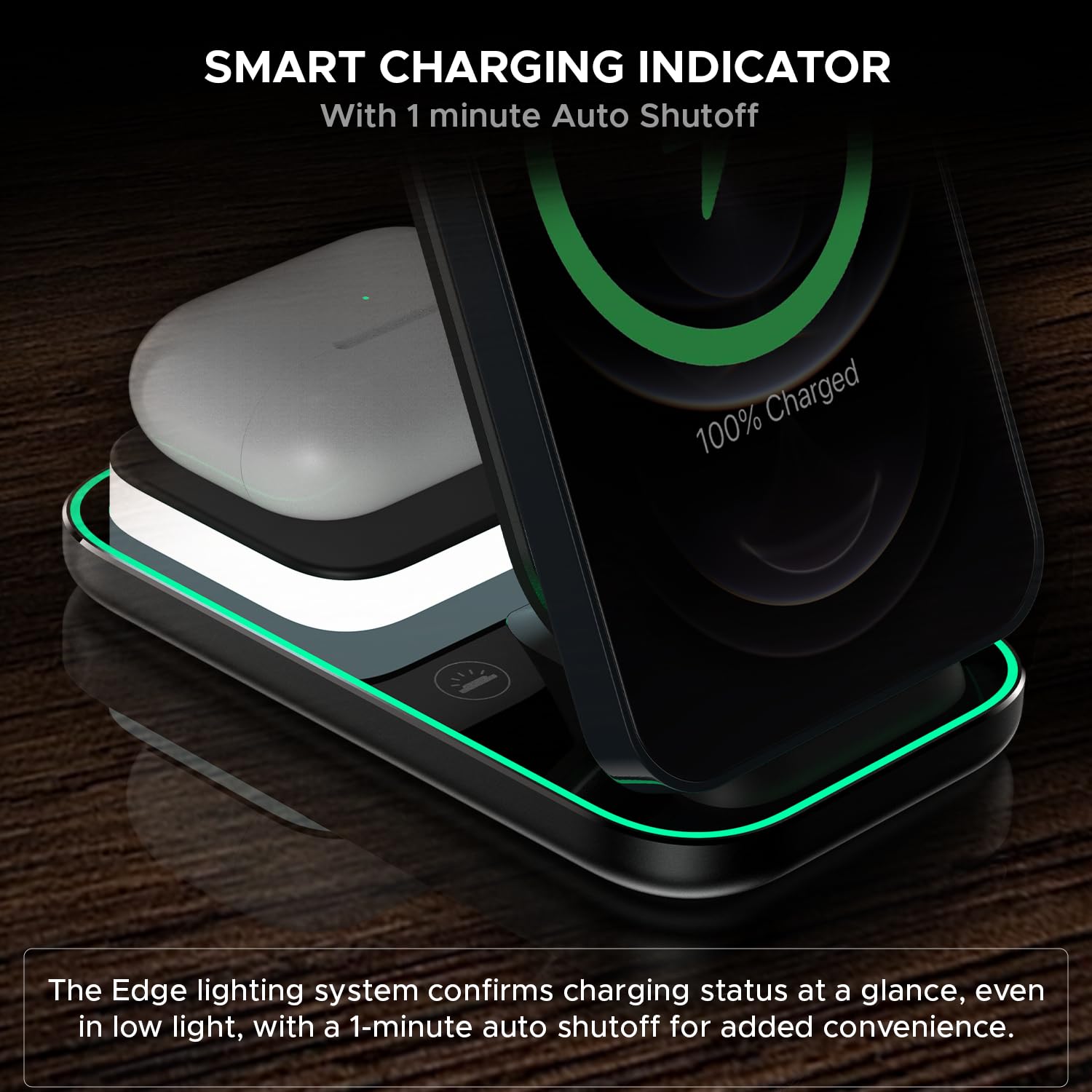 𝟮𝟯𝗪 𝗧𝗼𝘁𝗮𝗹 𝗣𝗼𝘄𝗲𝗿 𝗢𝘂𝘁𝗽𝘂𝘁: Provides efficient and fast charging with 15W for iPhones, 5W for AirPods, and 3W for Apple watches, ensuring all your devices are powered up quickly and efficiently.