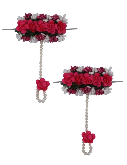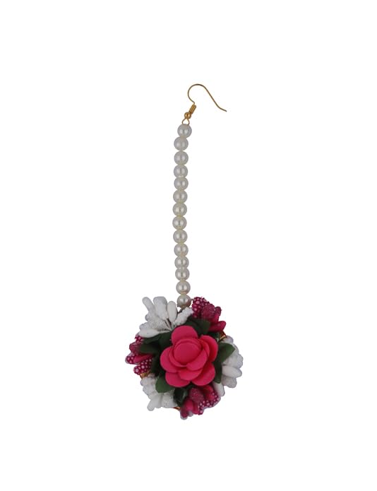 Anuradha Pearl Flower Jewellery Set for Haldi Gota Patti Necklace Earrings, Bracelet & Maang Tika for Women & Girls (Mehandi/Haldi/Wedding/Bridal/Baby Shower)