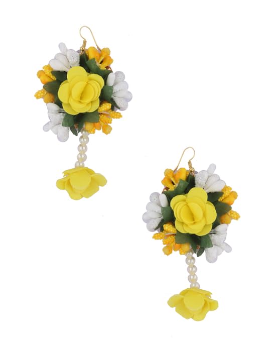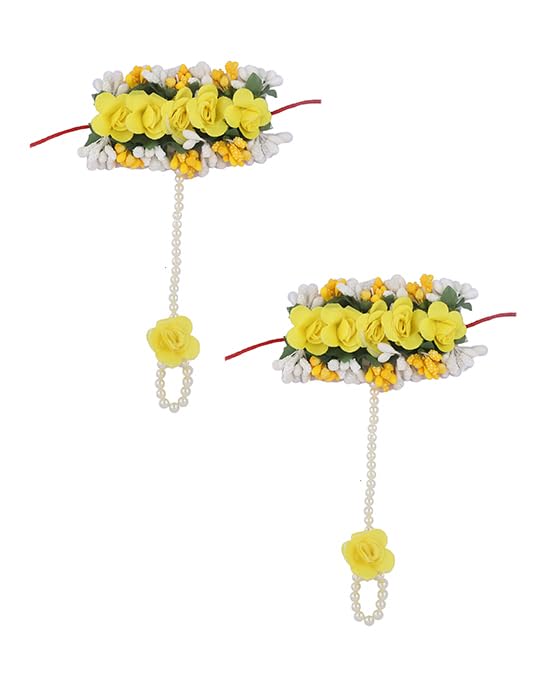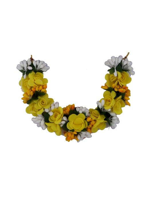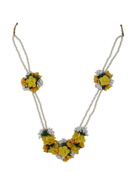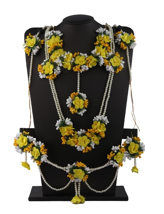 Anuradha Plus presents Yellow Colour bridal jewellery set for haldi ceremony and baby shower jewellery, if you are searching for flower jewellery then you are at the right place. We offer a wide collection flower jewellery. It consists of necklace, pair of maAPhing earrings, maang tika, single bajuband and pair of hath-phool. So order now!