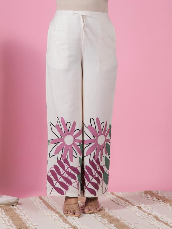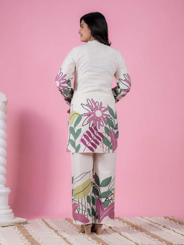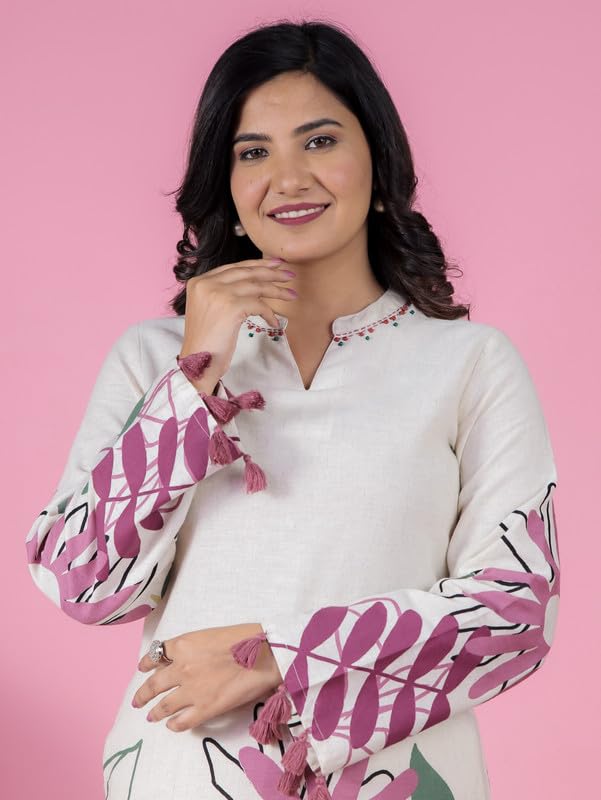 Aramya Cream Kurta Set for Women | Soft Cotton Kurta set for Ladies | Placement Print Print Women’s Kurta Set | Women Kurta Set for Office or Casual Wear | Available in Plus Sizes, M to 10XL