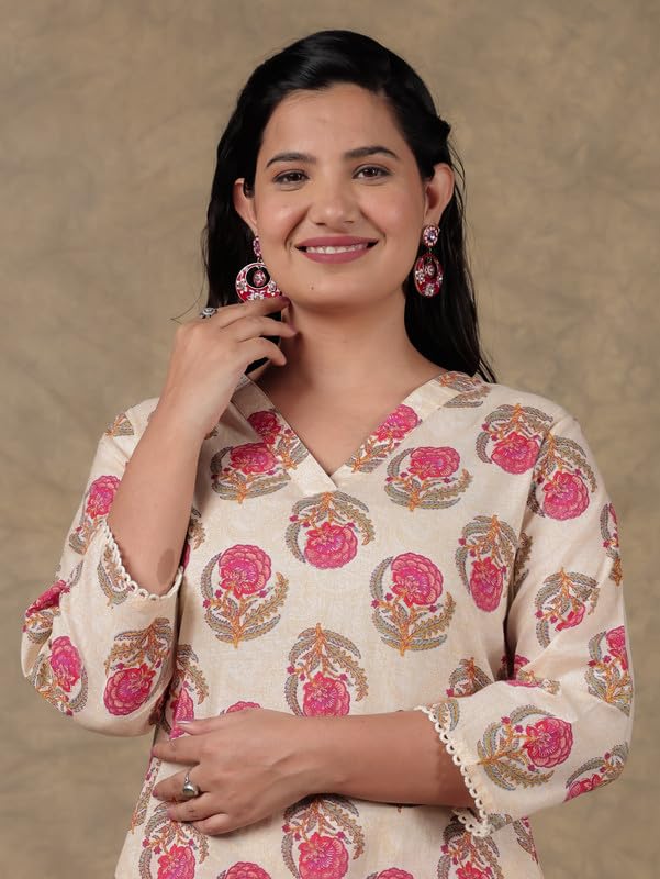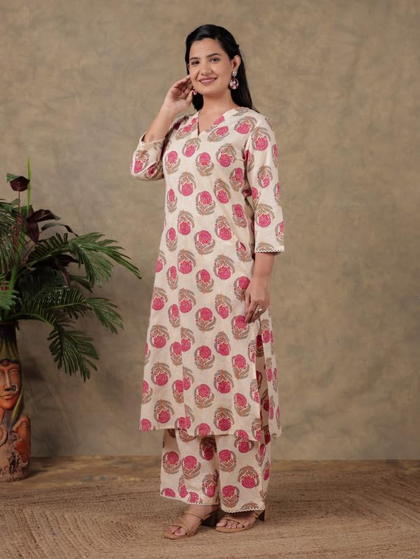 Aramya Soft Cotton Cream Straight Floral Print Office or Casual Wear Kurta Set for Women | Available in Plus Sizes, M to 10XL