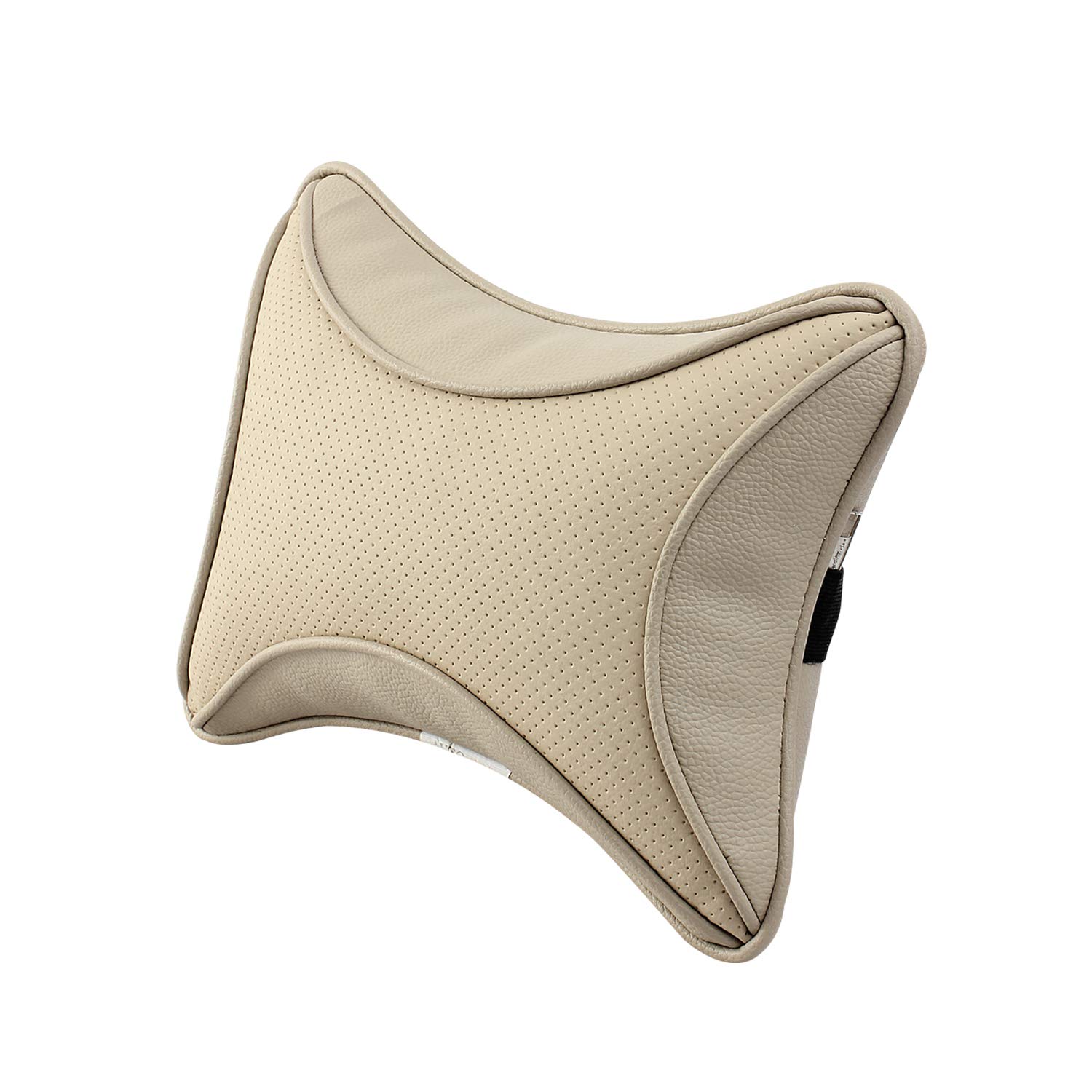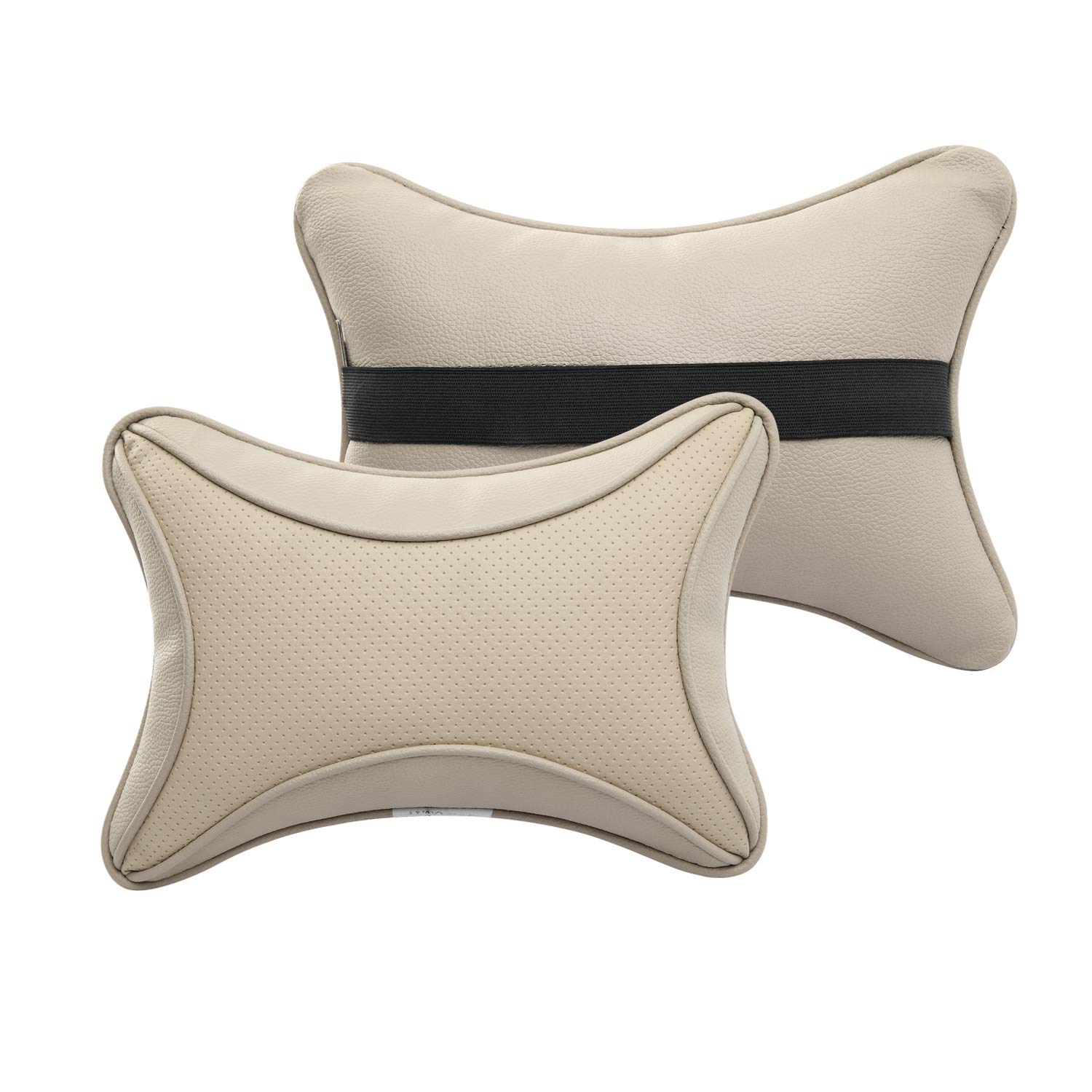 Auto Hub Car Faux Leather Neck Rest Pillow / Cushion for All Cars (Beige) – Pack of 2