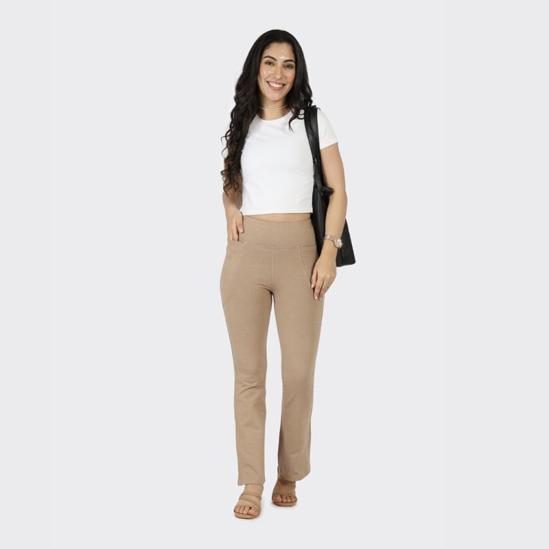 BlissClub Werk-It Flare Pants are crafted in our signature lightweight and breathable CottonFlex Fabric. It is a combination of 92% cotton and 8% spandex which makes it perfect for all seasons. The fabric is stretchable, no-see through, and mildly brushed to give that extra softness.