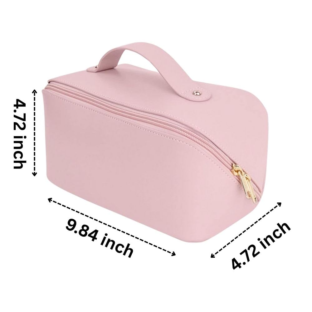 CAVALO – Be Unique Women’s Travel Cosmetic Bag. Large Capacity. Waterproof. PU Leather Makeup Organizer with Wide Opening, Toiletry Bag Makeup Organizer (Pink)