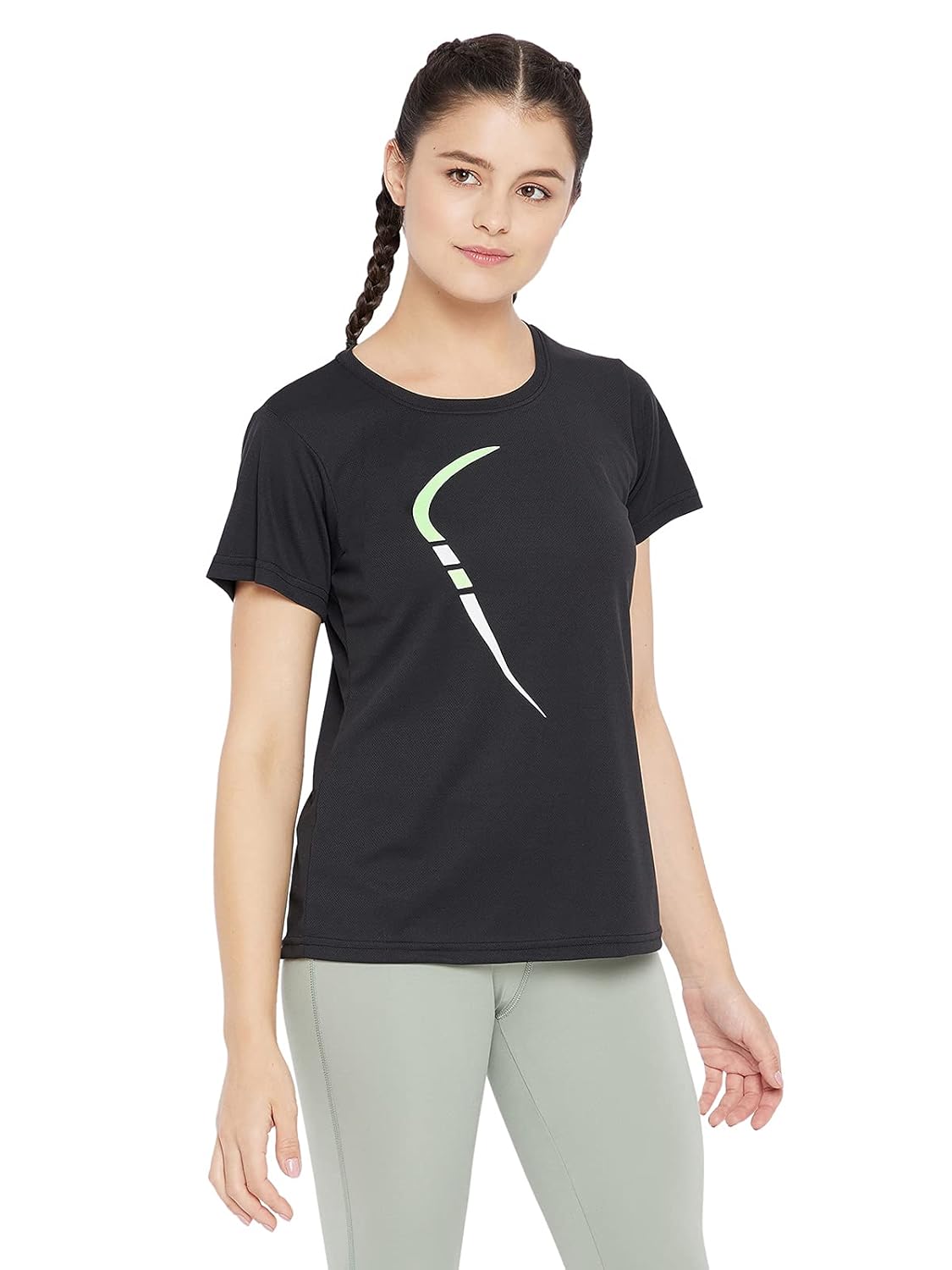 Clovia Women’s Comfort Fit Active Short Sleeve T-Shirt in Black
