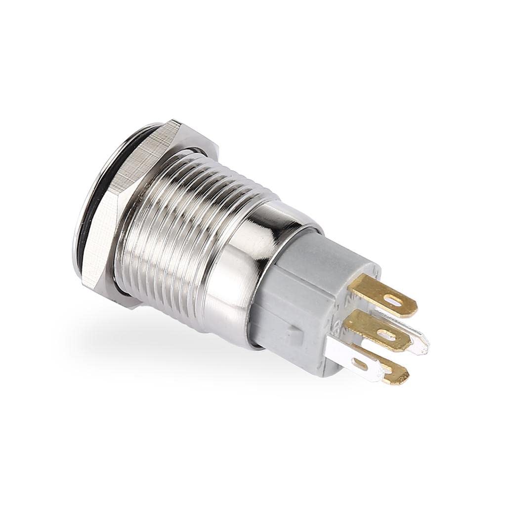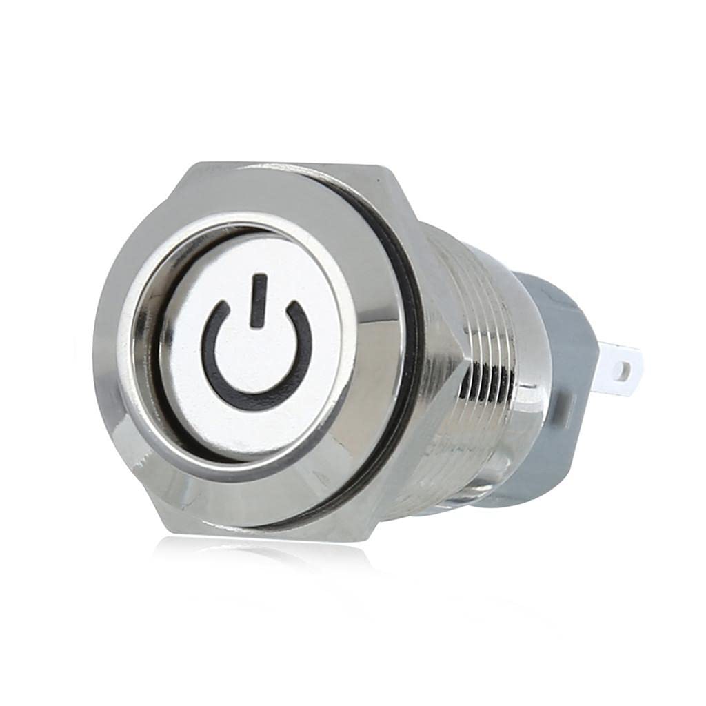 Club Bollywood®Latching Push on Switch ON/Off White Stainless Steel with Green LED Ring Suitable for 16mm/4.57” Mounting Hole| Parts & Accessories | Car & Truck Parts |1x Metal Push on Switch