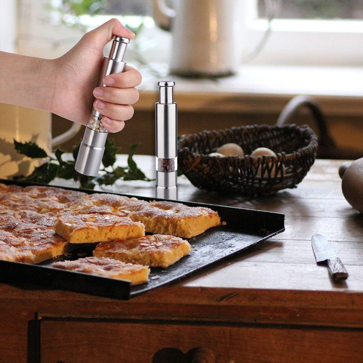 【HIGH-QUALITY】Pepper mill is made of brushed stainless steel, which has a good long lasting performance, and you don not need to worry about its getting rusty.