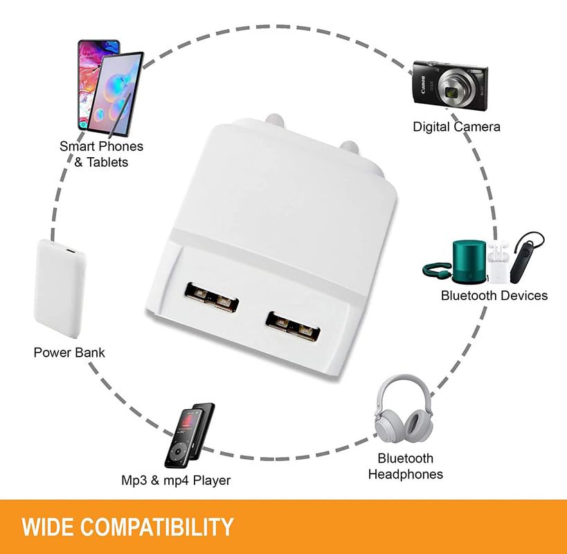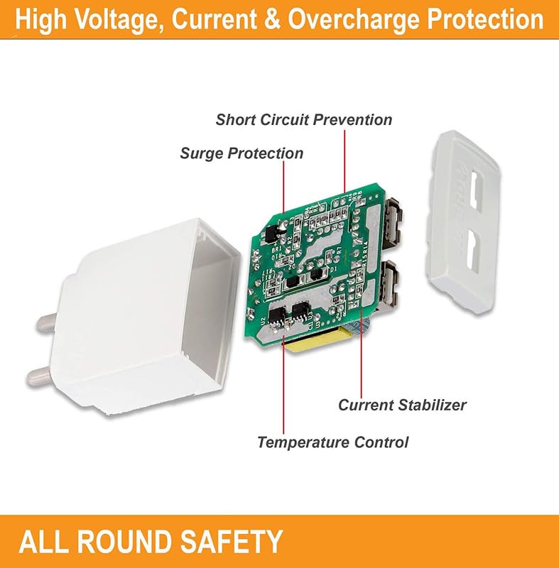 2.★INDIAN CONNECTORS: Made for Indian sockets, the wall charger lets you plug in without the need for an adapter And Over-current, ★ Short-circuit and Over-temperature protect your device. ★ Multiple Protections : Over-current, Short-circuit and Over-temperature protect your device, Auto Cut : On Over Heat. ★ Adaptive Fast Charging Technology & Slim and Compact Design, Over Current and Over Voltage Protection.