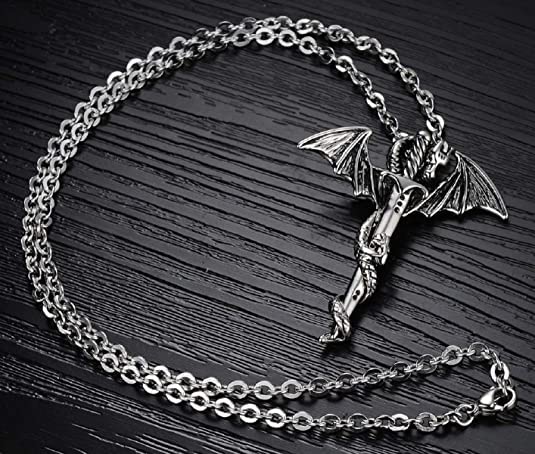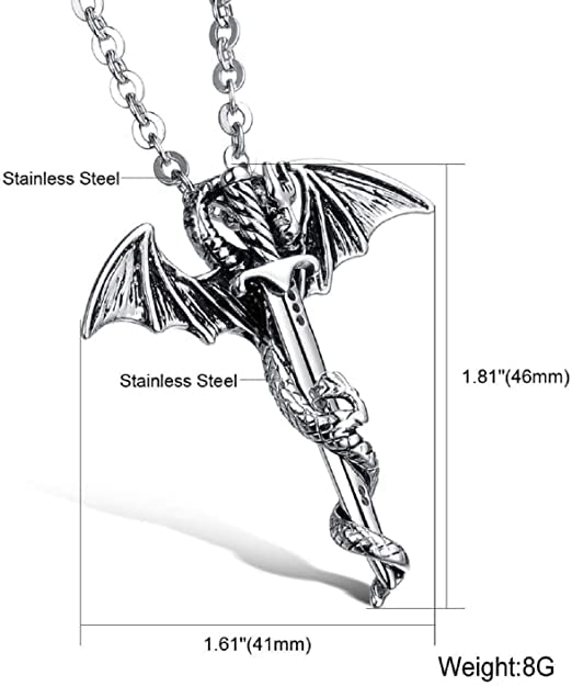 Generic Name : El Regalo Hip Hop Creative Sword Wing Dragon Pendant Chain Necklace for Boys/ Men