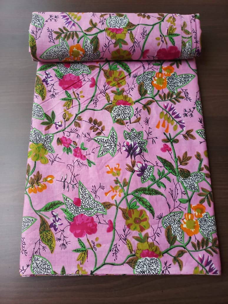 Fashionmart Floral Printed Cotton Fabric Women Dress Material Running Jaipuri Hand Block Printed Women Dress Material Kurtis Natural 44″ Inches Width 2.5 Meter (Paradise Pink)