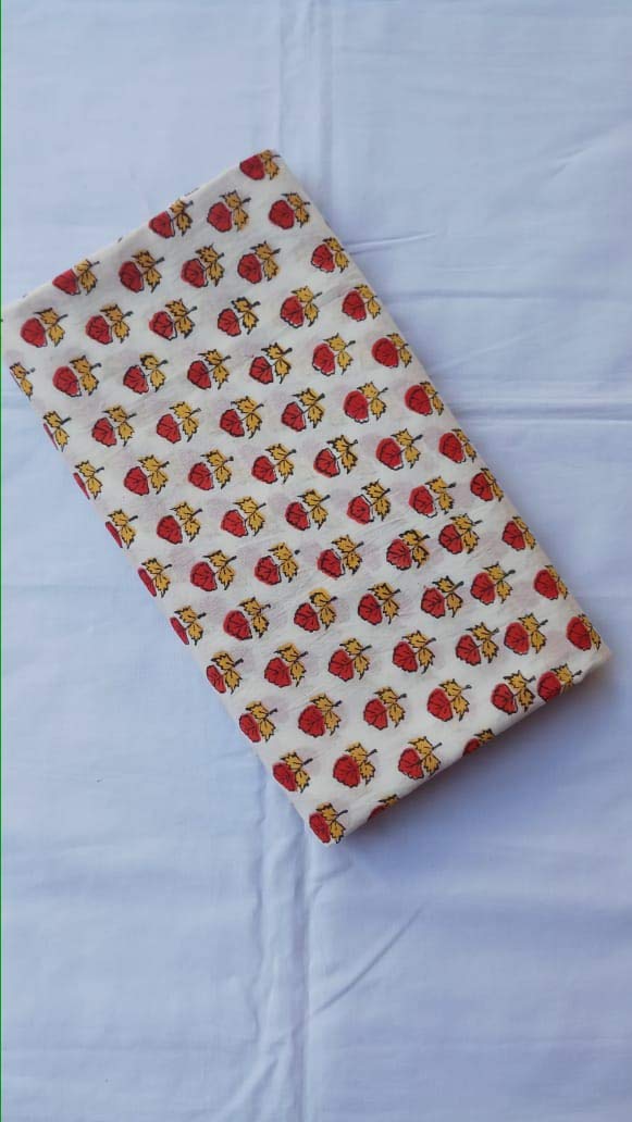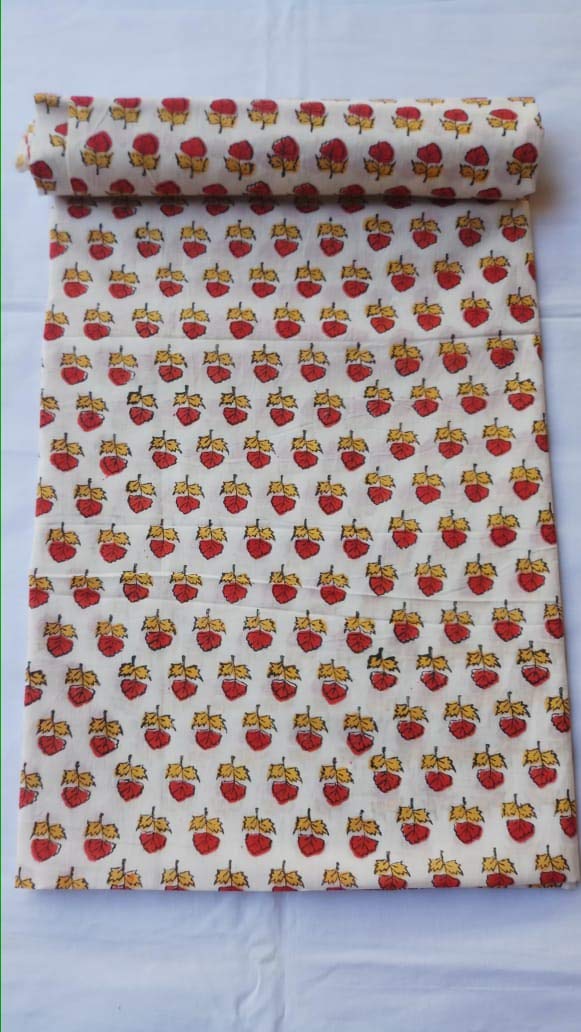 Fabric Width : 44 Inches(1.1 Meter) , Fabric : Light Weight , Cotton Thread count : 60 x 60 , Quality : 92 x 88 ( best quality) The beautiful art of block Printing employs wooden or metal blocks to print designs and patterns on fabric, by hand. What makes block Printing unique is that the design has to be created by the artist before the Printing begins. It is carved onto the block by hand. The carved block is dipped into the required color. The Most Reasonable Prices And Can Be Used For Dresses, Tops, Blouses, Jackets, Crafting, Embellish your clothes, Pillows, Drapery, Home Décor, Outdoor, Quilting, Sewing, Clothing , Curtains , Scarves , Drapes , Bags & Accessories , Home Furnishing , Comforter Covers , Home Decor Items , Table Cloths & Many More.