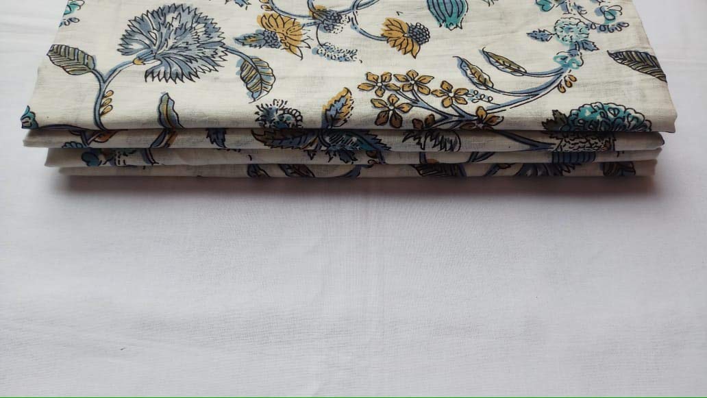 Fabric Width : 44 Inches(1.1 Meter) , Fabric : Light Weight , Cotton Thread count : 60 x 60 , Quality : 92 x 88 ( best quality) The beautiful art of block Printing employs wooden or metal blocks to print designs and patterns on fabric, by hand. What makes block Printing unique is that the design has to be created by the artist before the Printing begins. It is carved onto the block by hand. The carved block is dipped into the required color. The Most Reasonable Prices And Can Be Used For Dresses, Tops, Blouses, Jackets, Crafting, Embellish your clothes, Pillows, Drapery, Home Décor, Outdoor, Quilting, Sewing, Clothing , Curtains , Scarves , Drapes , Bags & Accessories , Home Furnishing , Comforter Covers , Home Decor Items , Table Cloths & Many More.