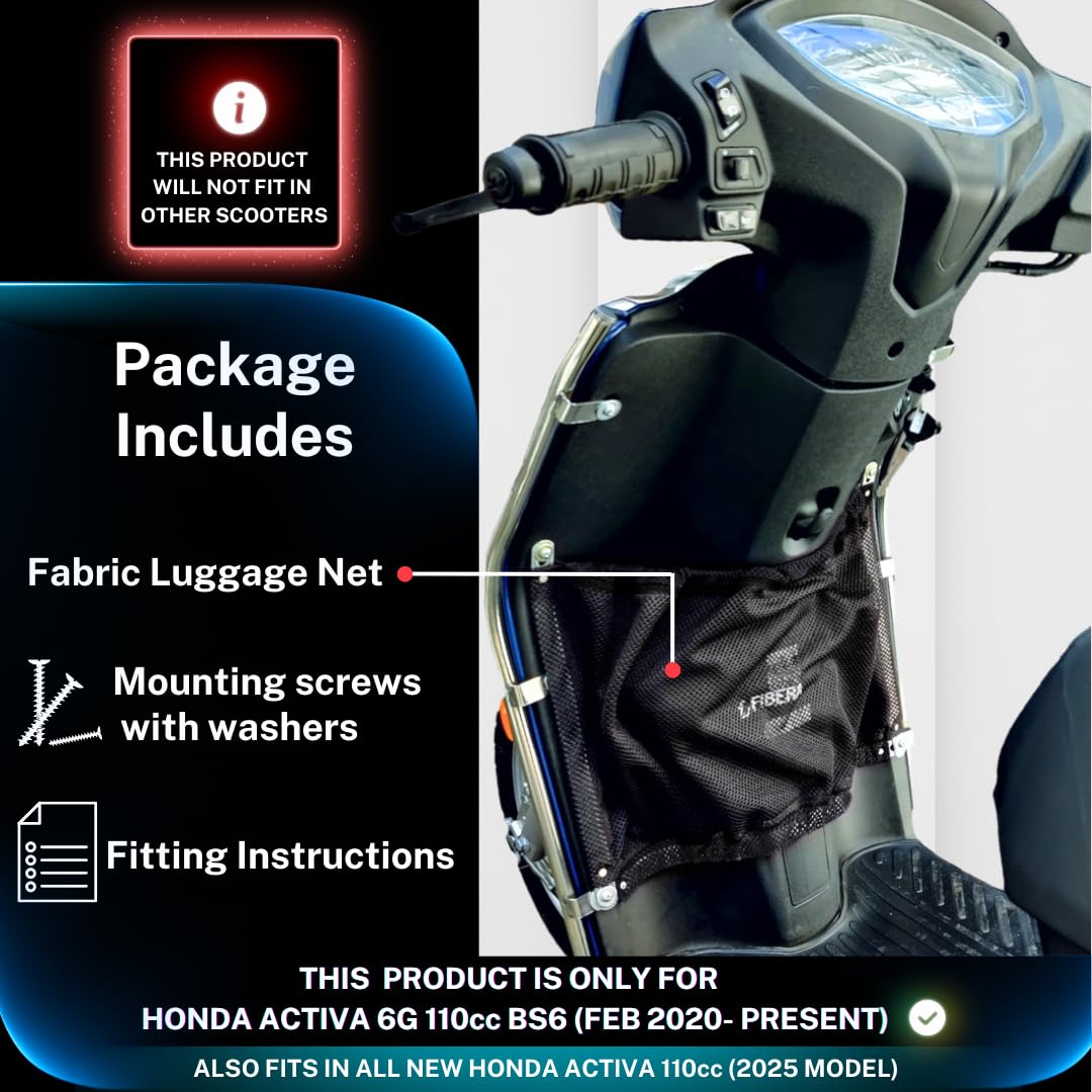 Enhance your Activa 110cc 6G (FEB 2020- Present) & All New Activa 110cc (2025 Model) scooter with the FIBERA Smart Front Basket, a practical and stylish accessory designed to meet your daily storage needs. This fabric basket, specifically tailored for Activa 110cc 6G (FEB 2020- Present) & All New Activa 110cc (2025 Model) (NOT FOR ACTIVA 3G/4G/5G, ACTIVA 125cc), offers a perfect fit and easy installation, ensuring you can carry your essentials with ease.