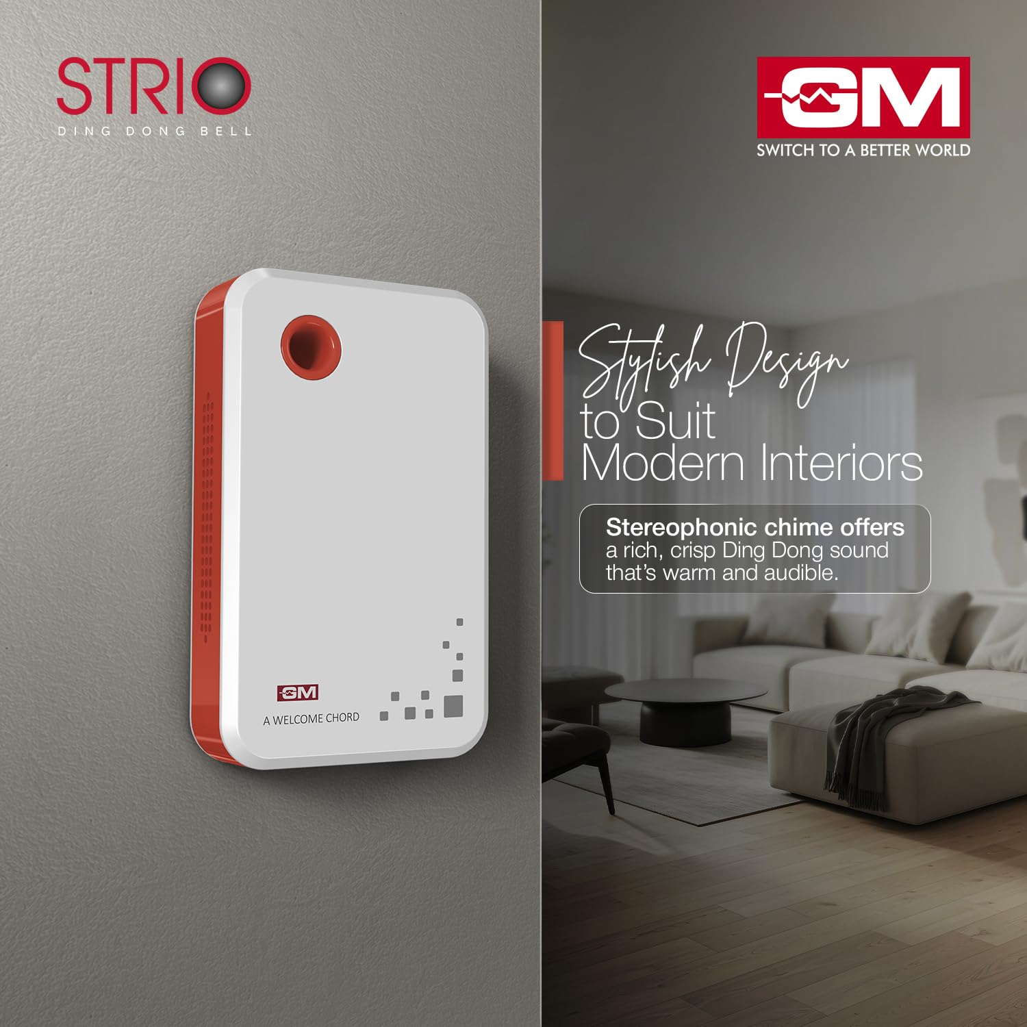 GM 4008 Strio Stereophonic Ring Doorbell, Wall-Mounted Ding Dong Bell, Soothing Chime Suitable for Hotel Rooms and Homes. (Pack of 1)
