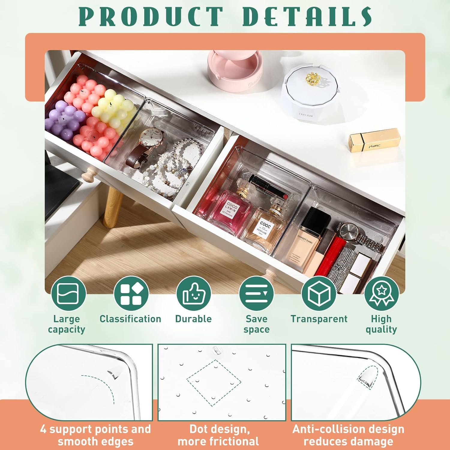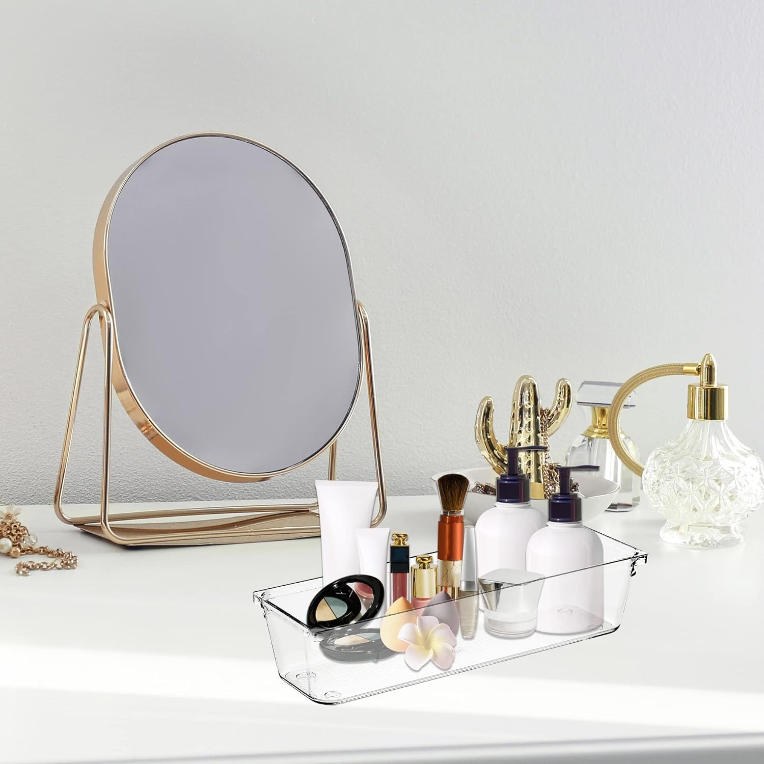 Golden bird 6 pcs Desk Drawer Organizer Trays Bathroom Drawer Tray Dividers Plastic Vanity Organizers Storage Bins for Makeup Dresser Kitchen Office (Clear) (3″ x 9″)
