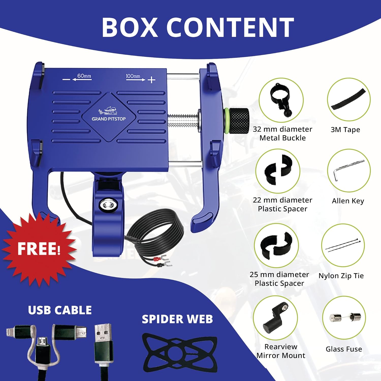 ALL TOOLS & SPARE PARTS INCLUDED – Along with the main unit, we provide: 1) REARVIEW MIRROR MOUNT – Provided especially for SCOOTERS; 2) METAL BUCKLE & SPACERS – We support 3 common sizes of handlebar diameter i.e. 22, 25, and 32 mm; 3) HEX KEY – This is very useful to tighten / loosen the buckle.