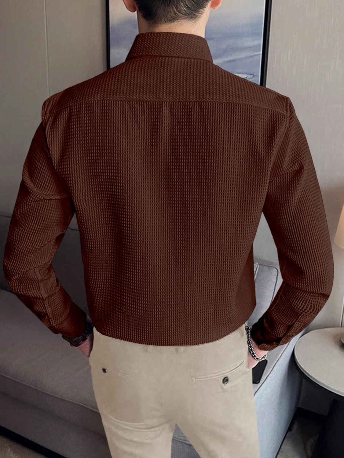 GRECIILOOKS Men’s Formal Button Down Shirt – Slim Fit Office Wear Shirt’s for Men | Textured Long Sleeve Cotton Blend | Business & Meeting Ready (Available in Plus Size and Combo Pack of 2)