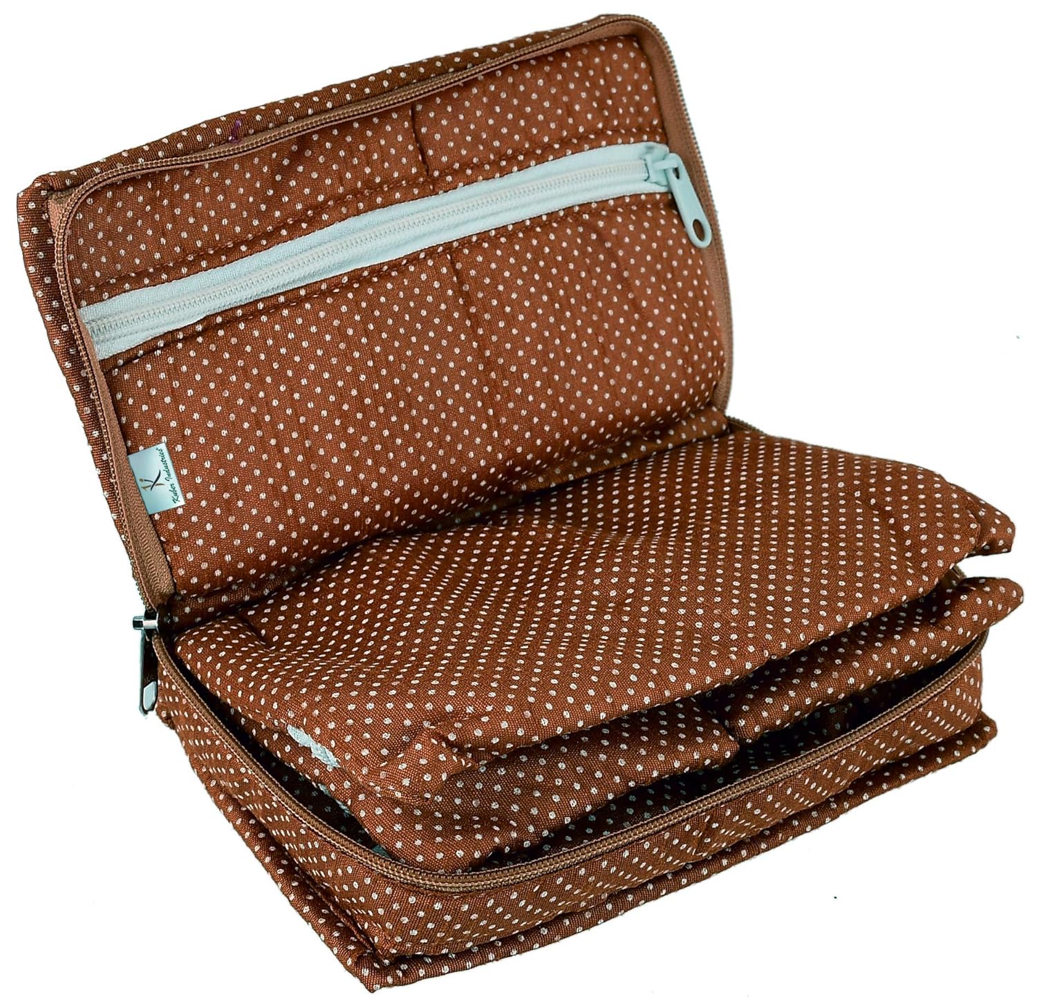 Heart Home Cotton Multipurpose 7 Pocket Dot Printed Jewellery Storage Bag Pouch/Travel Kit Organizer (Brown)-KUBMART15431