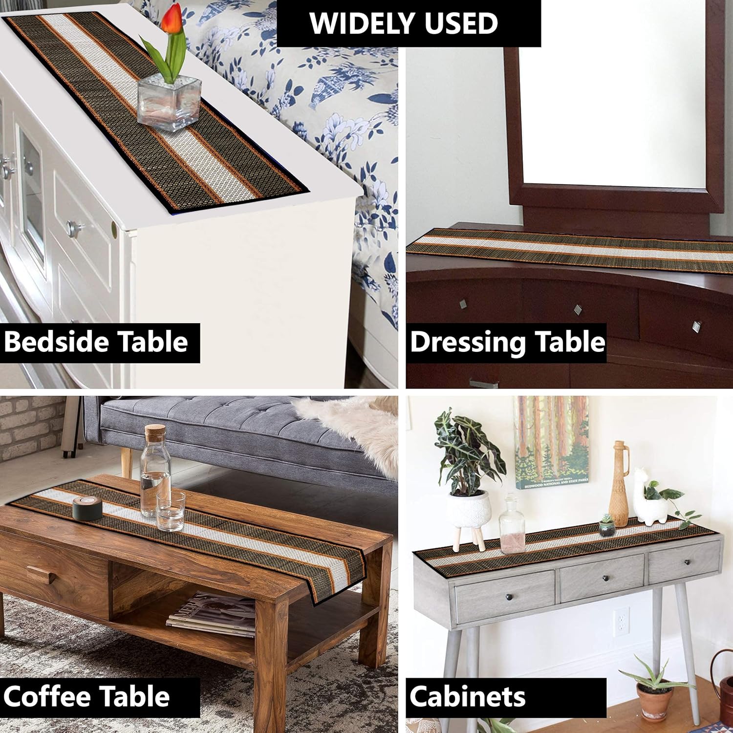 MATERIAL – This 4 Seater Dining Table Runner is made out of locally grown soft reed grass (also called Madurkathi reed) from West Bengal and woven on a bamboo loom, this is one of its kind product. CLOTH PIPING – The bold borders of this centre table runner are smart and exquisite, and lend it a fresh feel and also ensures that runner does not split from ends.