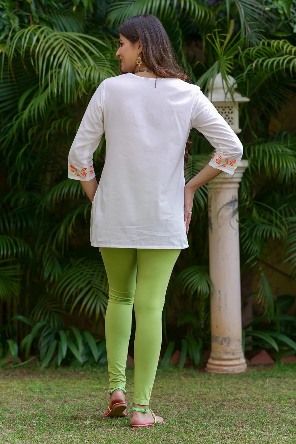 INAAYA JAIPUR Women’s Cotton, Round Neck, 3/4 Sleeves, Popsicle Embroidered Short Kurta Perfect for Casual, Ethnic Wear