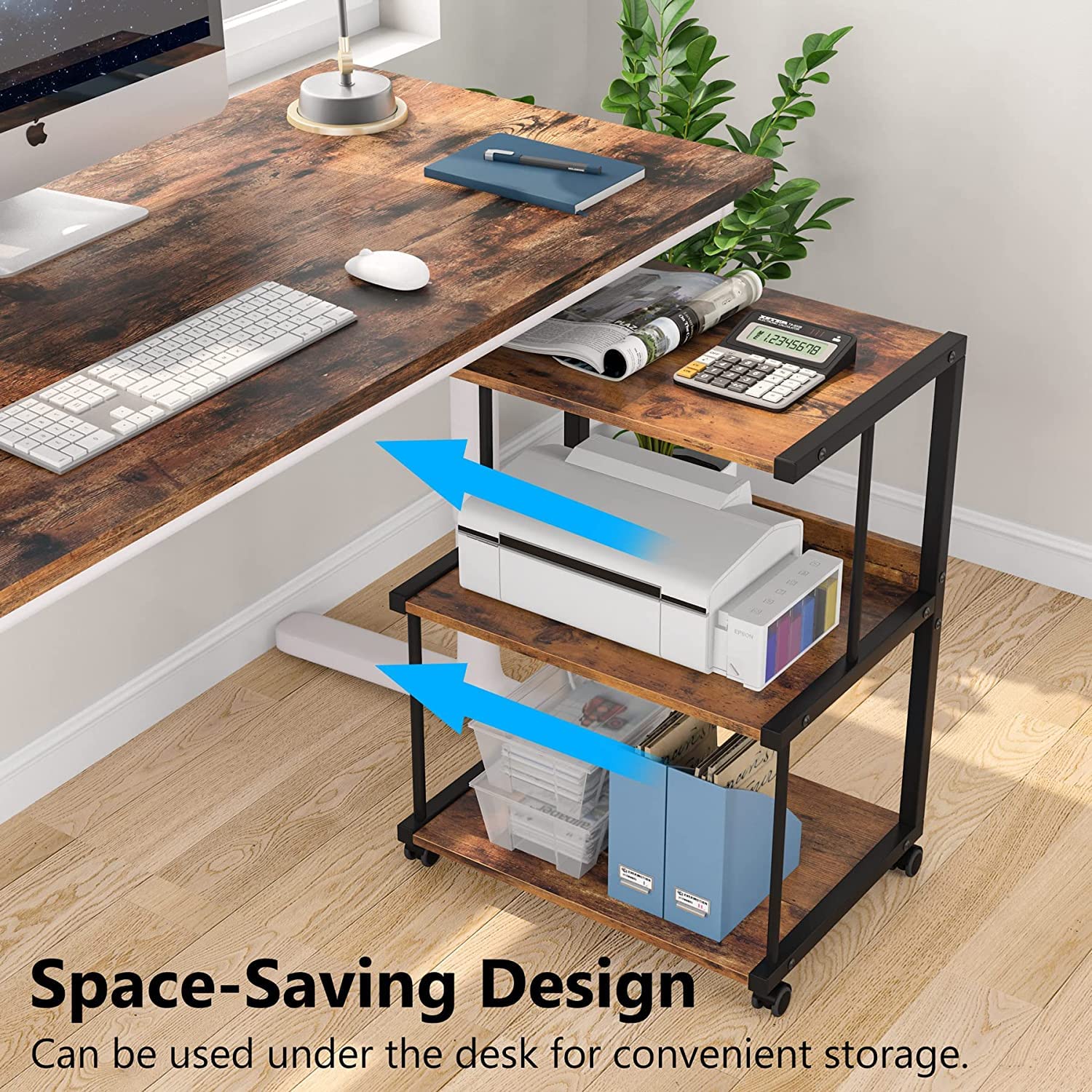 Indian Decor 65202 Printer Stand 3-Shelf With Storage, Rolling Printer Table Machine Cart With Wheels, Mobile Desk Organizer Shelves For Office And Home (Rustic Brown) Tabletop