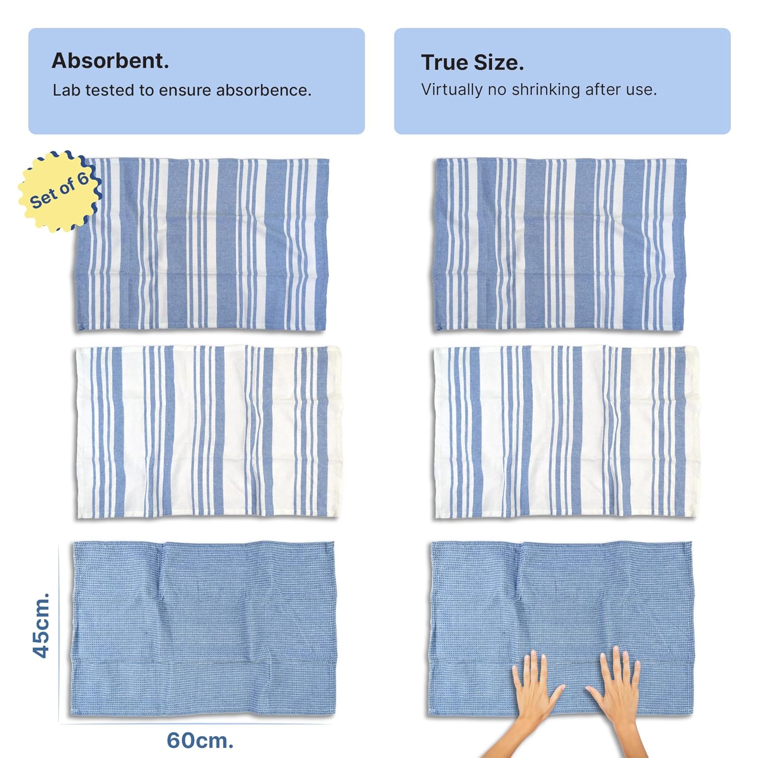 Available in Packs of 4 or 6: You can choose from packs of 4 or 6 towels, depending on your needs. Each towel is generously sized, measuring 60cm x 40cm, which makes it easy to manage yet large enough to handle big spills.