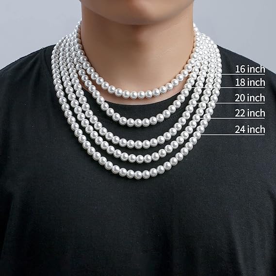 INSELLBERG Glass Pearl Necklace for Men 8mm Off White Mens Pearl Choker Necklace Trendy Jewelry Gifts for Men Women