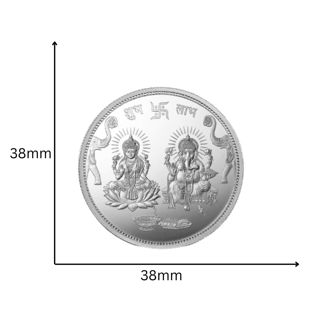This 20g Jalaan’s Coin has been made in 999 Purity silver. It has beautiful minted Ganesh Ji and Lakshmi Ji on one side and has the specifications of the coin on the other side.
