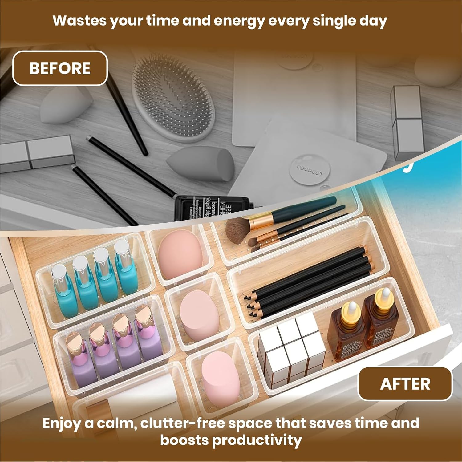 𝐂𝐋𝐄𝐀𝐑 𝐃𝐄𝐒𝐈𝐆𝐍 𝐅𝐎𝐑 𝐄𝐀𝐒𝐘 𝐀𝐂𝐂𝐄𝐒𝐒: The transparent acrylic makes it easy to see everything inside, so you can quickly find what you need without searching. It also gives your drawer, vanity, or desk a neat and modern look.