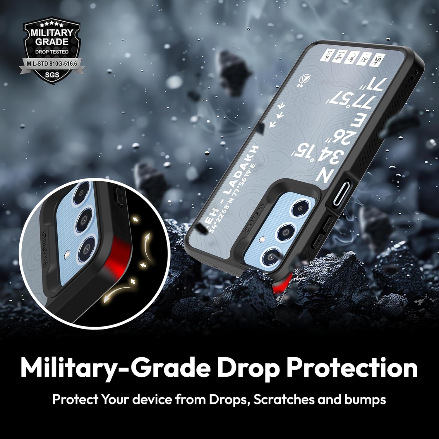 Protection: It meets military drop-test standards to ensure that your device stays protected from accidental falls and shocks