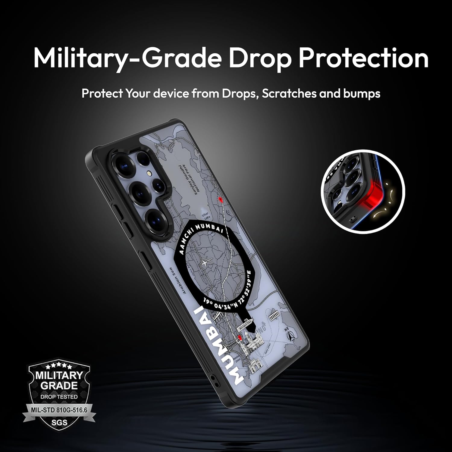 Protection: It meets military drop-test standards to ensure that your device stays protected from accidental falls and shocks