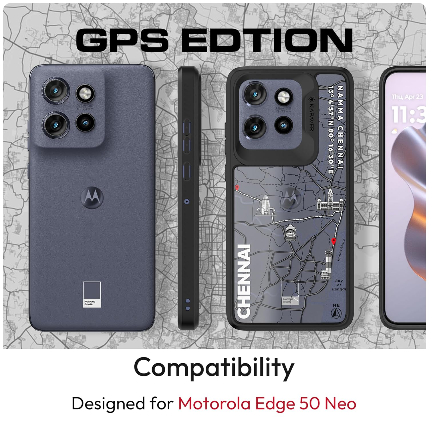 KAPAVER GPS Edition Back Cover Case Compatible with Motorola Edge 50 Neo (PC+TPU) (GPS Chennai)