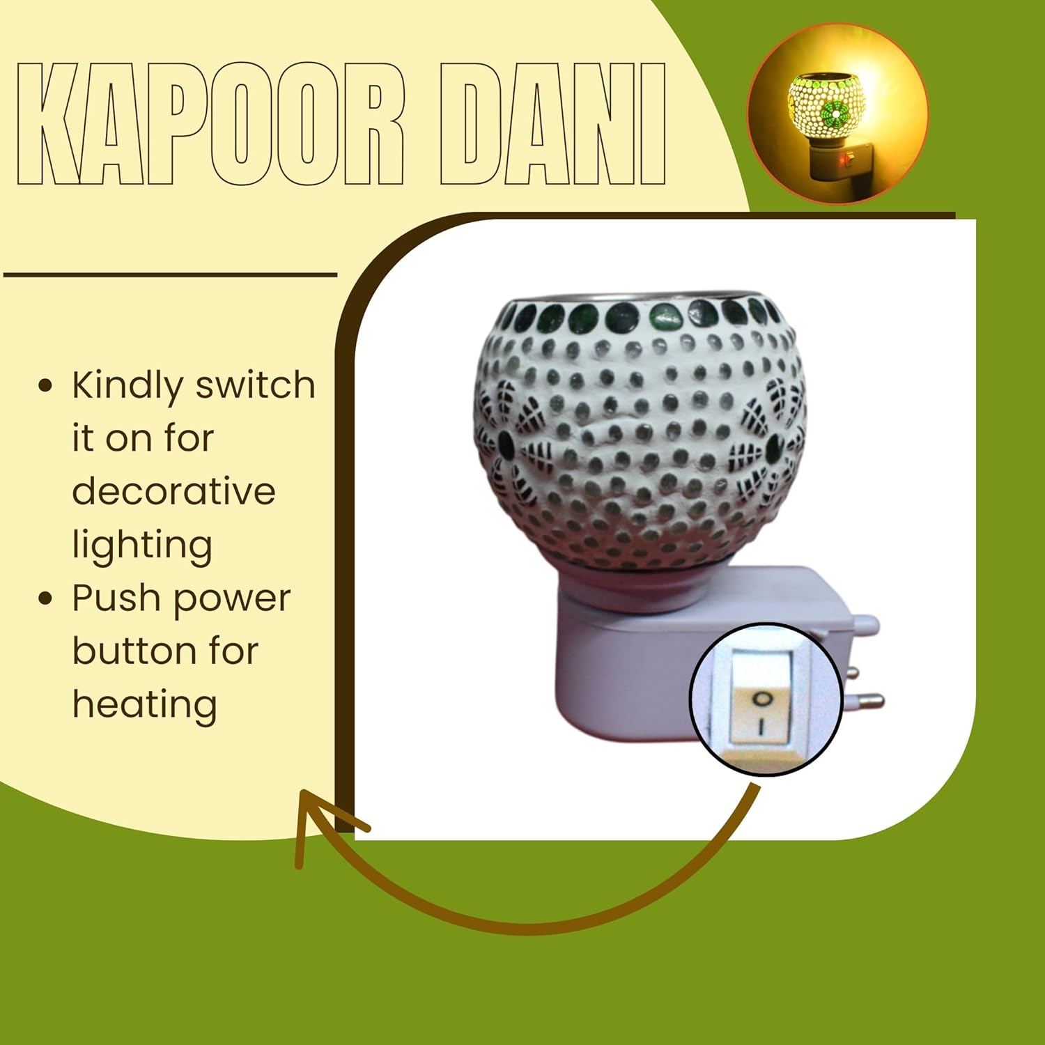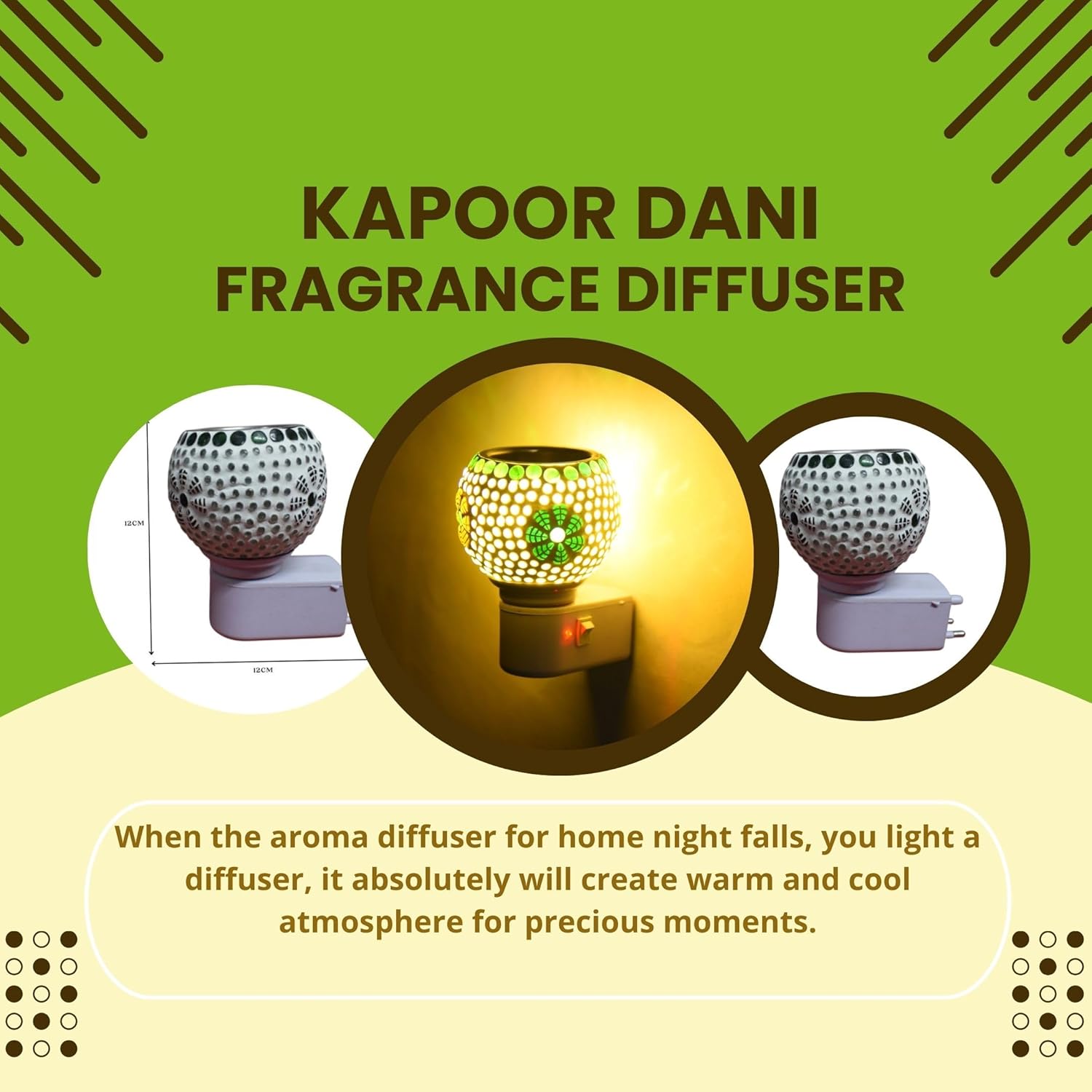 👉 The fragrance of camphor oil has a calming effect on the mind and brings a good night’s sleep. Kapoor dani night lamp/camphor diffuser burner/Kapoor dani electrical camphor/camphor burner/camphor diffuser/Kapoor diffuser for home.