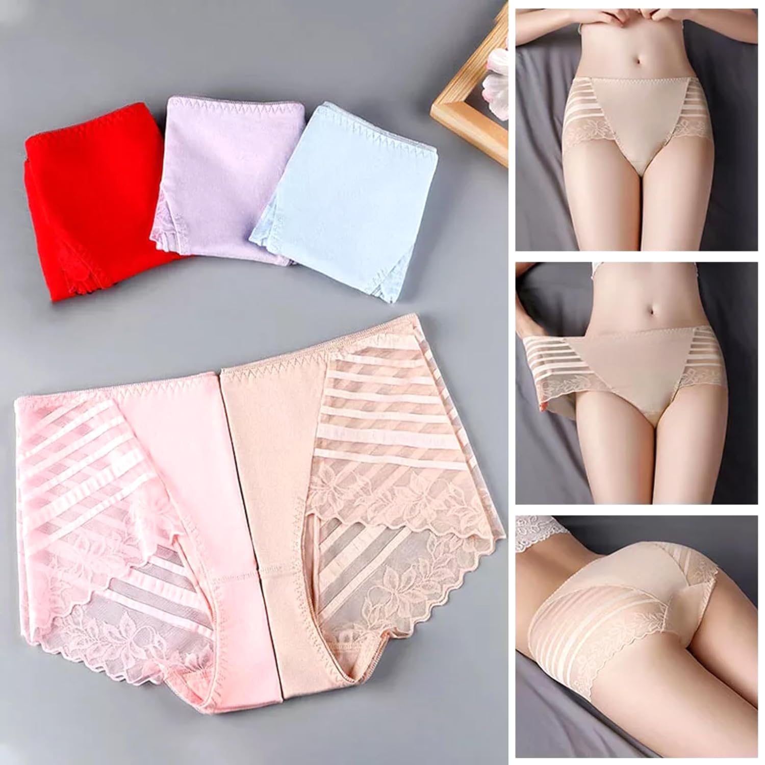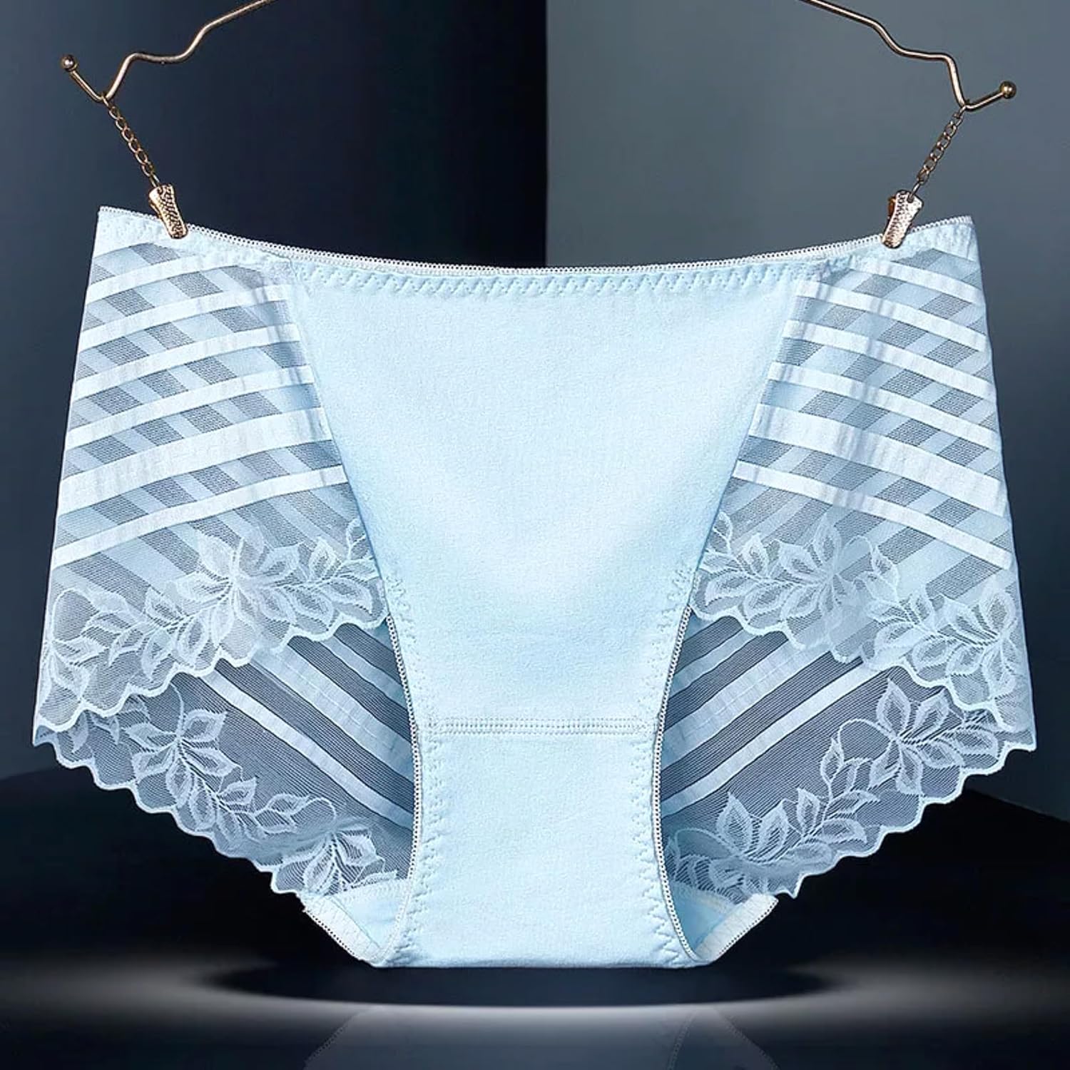 Elevate your everyday comfort with these exquisitely designed women’s underwear featuring elegant lace detailing and a sophisticated floral pattern. The mid-rise briefs showcase a seamless construction that ensures a smooth silhouette under clothing. The delicate hollow-out design along the sides adds a touch of feminine charm while maintaining functionality. Crafted with soft, comfortable fabric, these panties provide excellent coverage and support for daily wear. Available in lovely pastel shades of pink, lavender, and light blue, these briefs combine style with practicality. The stretchy material and thoughtfully designed cut ensure a perfect fit that moves with your body. The lace trim adds a luxurious touch without compromising on comfort, making these briefs an ideal choice for those seeking both elegance and everyday wearability.