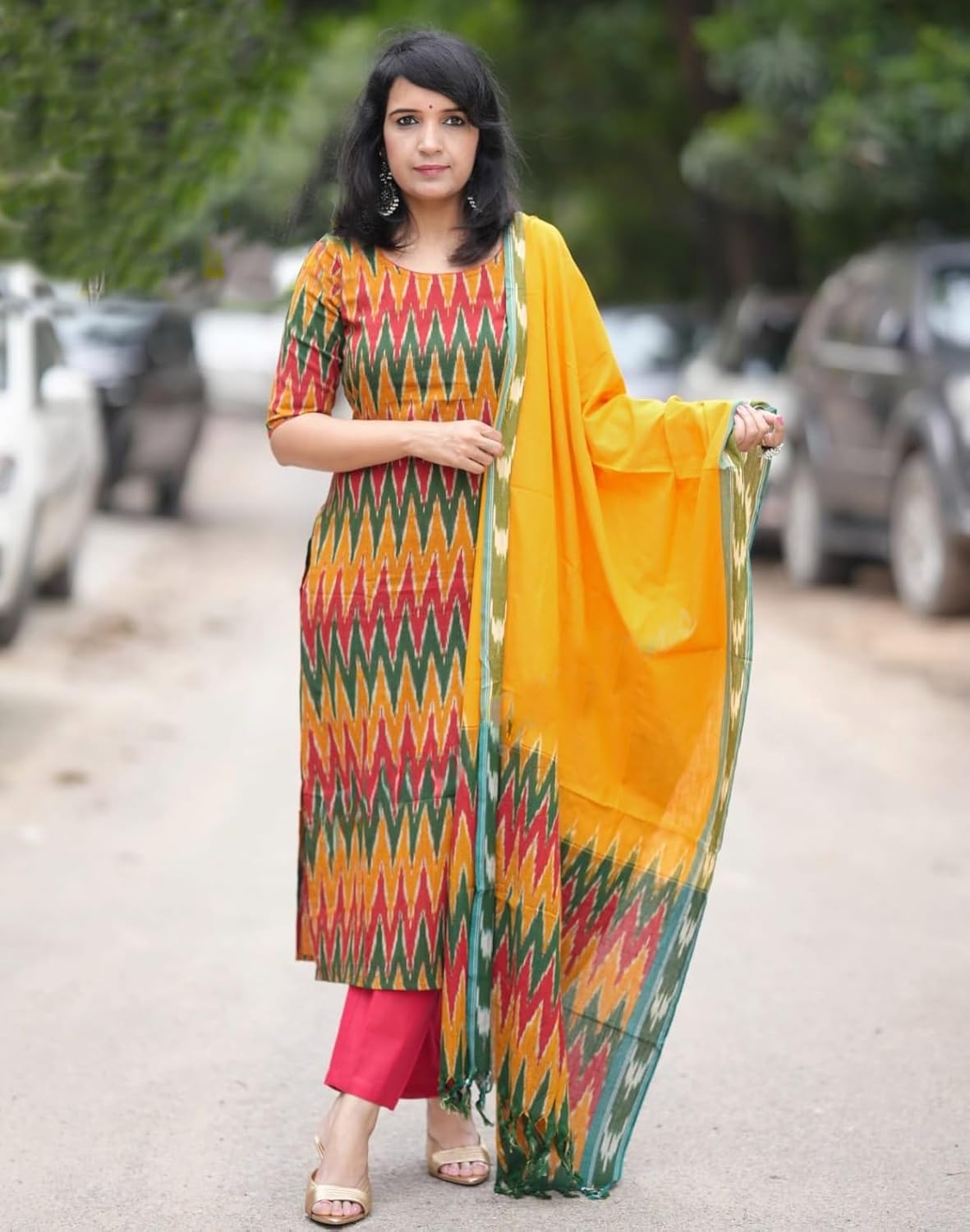 Customers love the salwar suit set’s colorful design and soft, comfortable fabric that feels good on the skin. The dress receives positive feedback for its perfect fit and versatility, being suitable for both festive and casual wear. They appreciate its lightweight nature and print quality, with one customer noting the vibrant design.