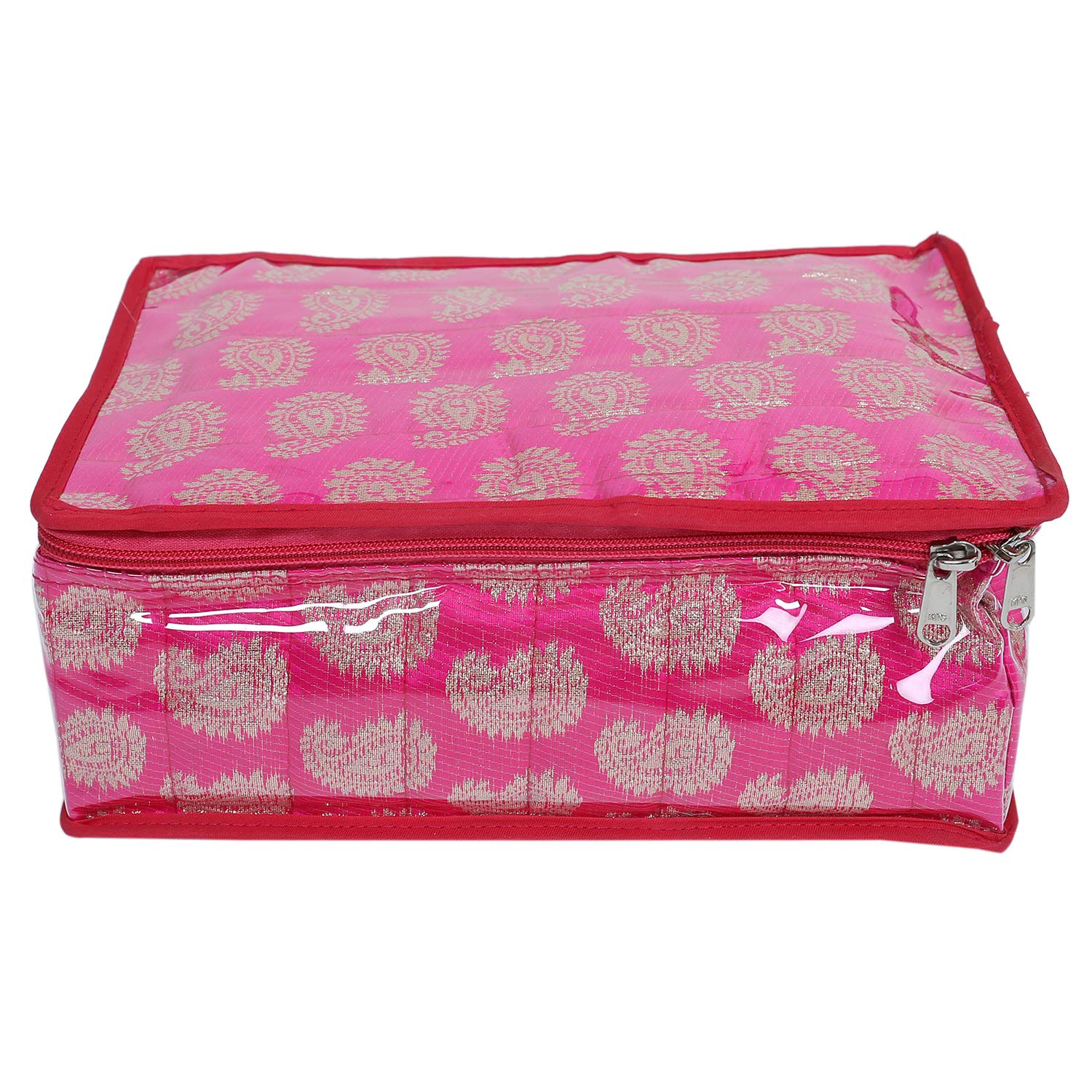 Locker jewellery kit in pink brocade with 12 different pouches in heavy satin fabric. This is an exclusive product which helps you to keep all your jewellery accessories in one product. Kuber industries brings products for every woman who dreams of being unique and stylish. It offers incredible range of handbags and jewellery boxes for women.