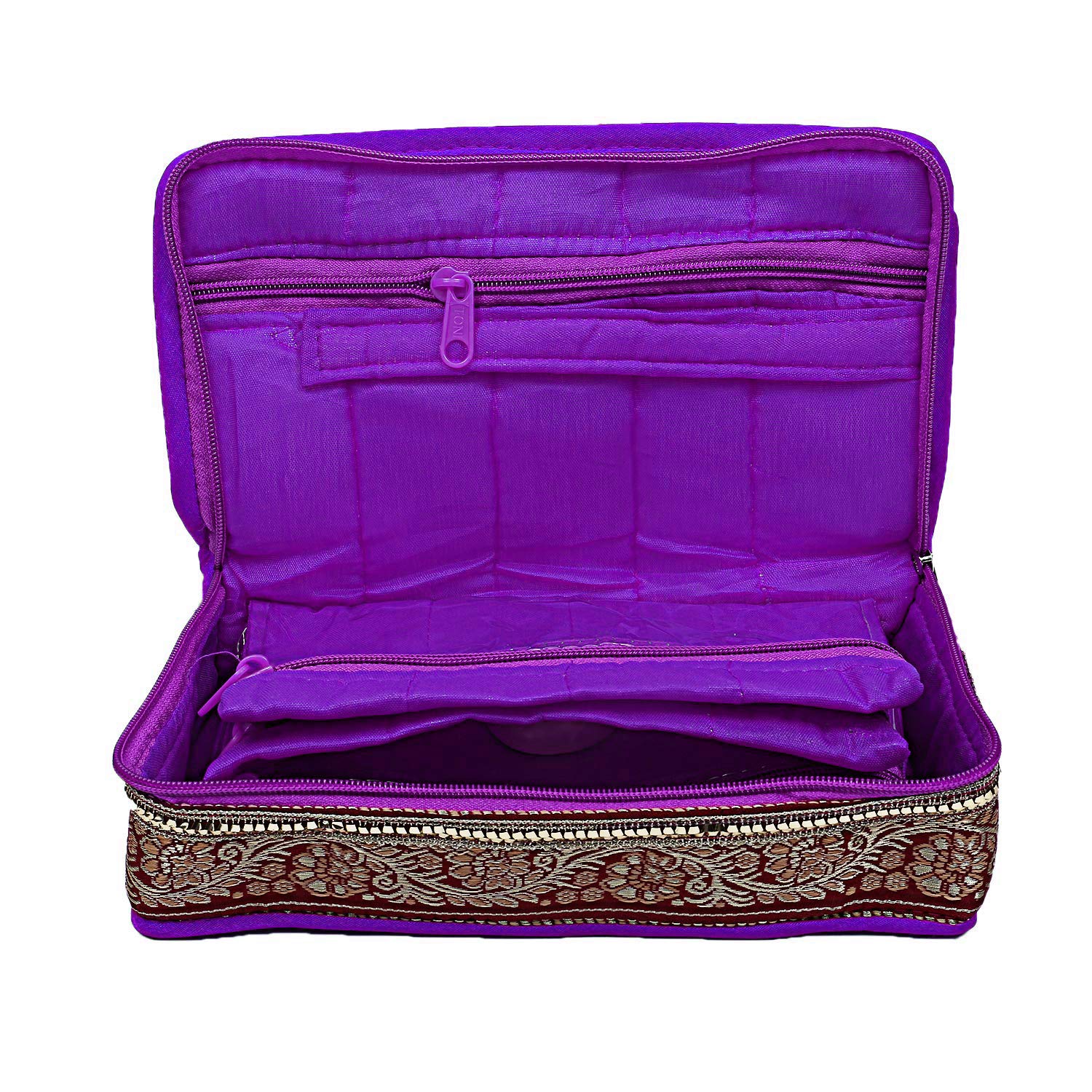 Kuber Industries Brocade Silk Jewellery Pouch Cum Makeup Organiser Kit (Purple)-KUBMART15785