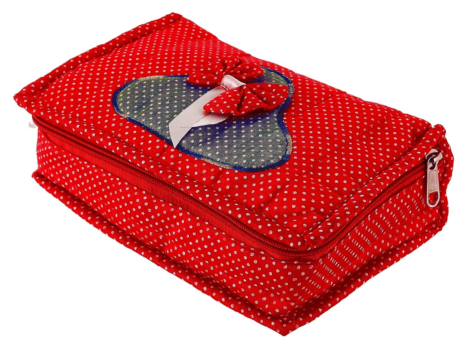 Kuber Industries Cotton Dot Printed Jewellery Pouch Cum Makeup Organiser Kit (Red)-Pack of 2-KUBMART15438