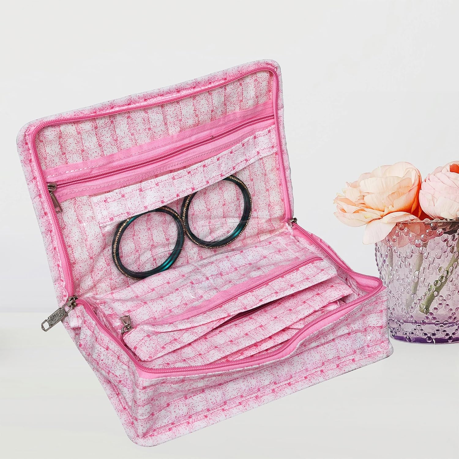 🔶 PACKAGE CONTAIN: 1 Piece Jewellery Kit | Check-Design | 8 Pouch | MATERIAL: PVC | PRODUCT DIMENSION: 24 cm x 16 cm x 14 cm