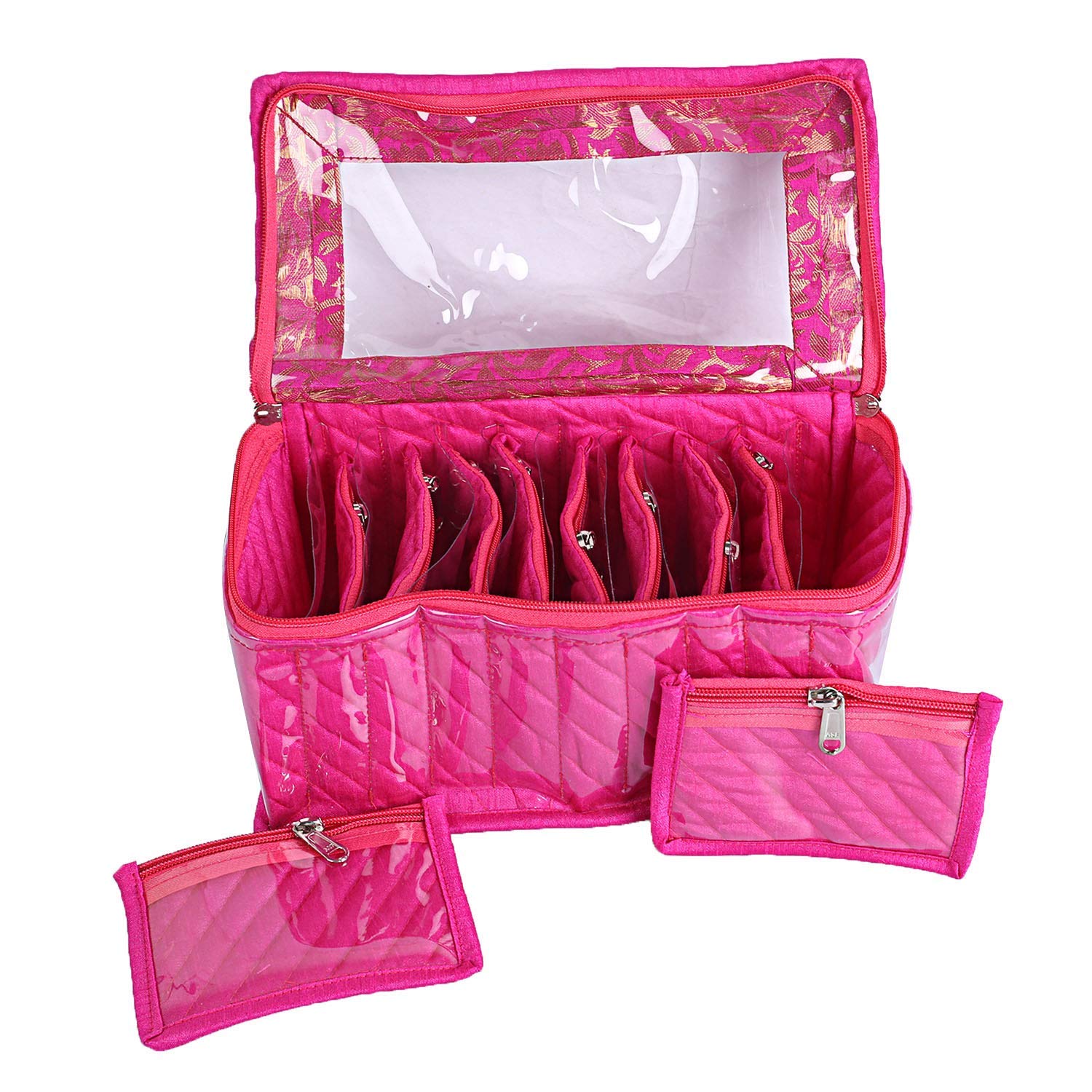10 Pouches for keeping your Jewellery safe and for best storage comes with one box. It’s a best option to use while travelling and it will help you to keep your heavy jewellery in a separate cover from other items in your luggage. Hand made cover from Cotton cloth. Long life jewellery kit for organizing your costly and favourite jewellery.