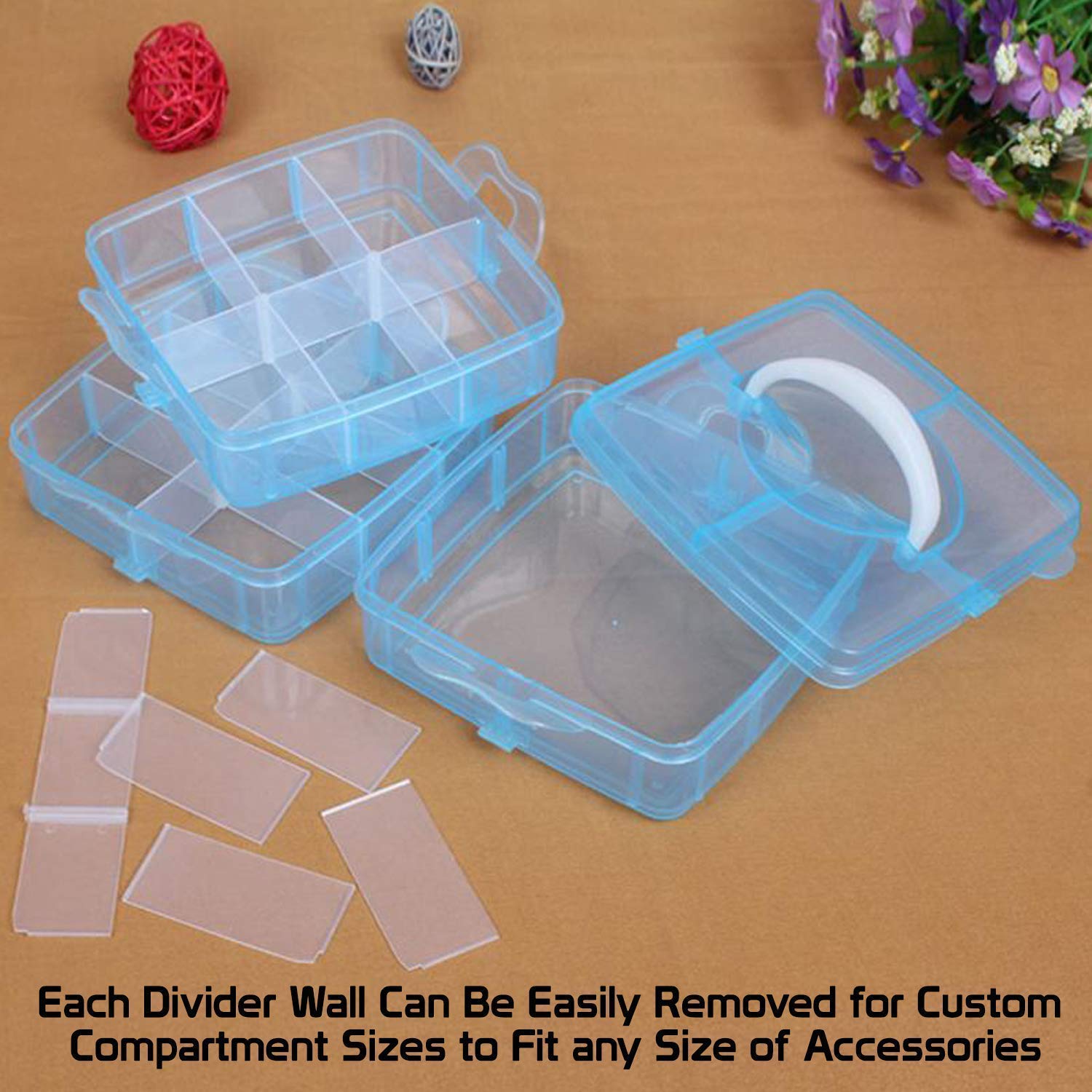 Adjustable Dividers :- It is easy to remove and place the diders according to the size or quantity of the items. Store anything you want with the removable dividers-ribbons, buttons, jewelry, make up, craft supplies, earrings, rings, beads, nuts and bolts or any small accessories.