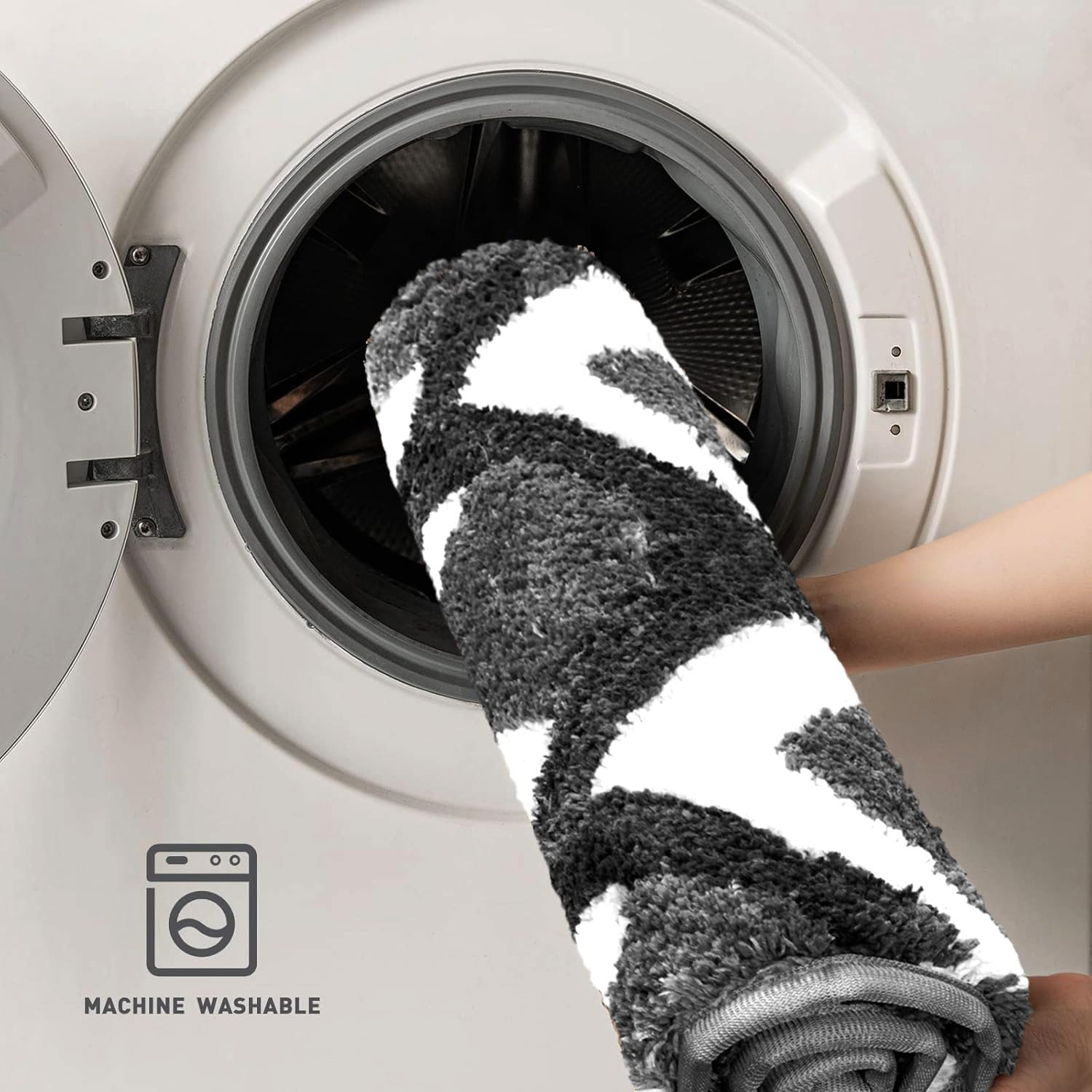 WASHABLE – Bathroom mat is Easy to Clean. Machine Wash Separately with Cold Water and Mild Detergent (No Chlorine or Bleach) Tumble Dry at Low Speed or Hang Dry.
